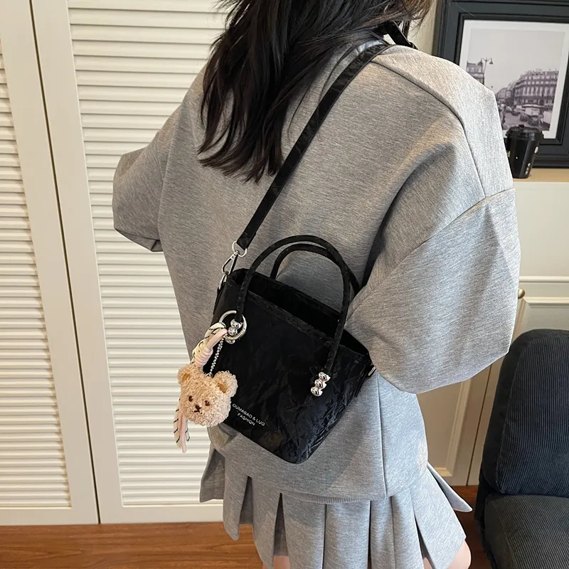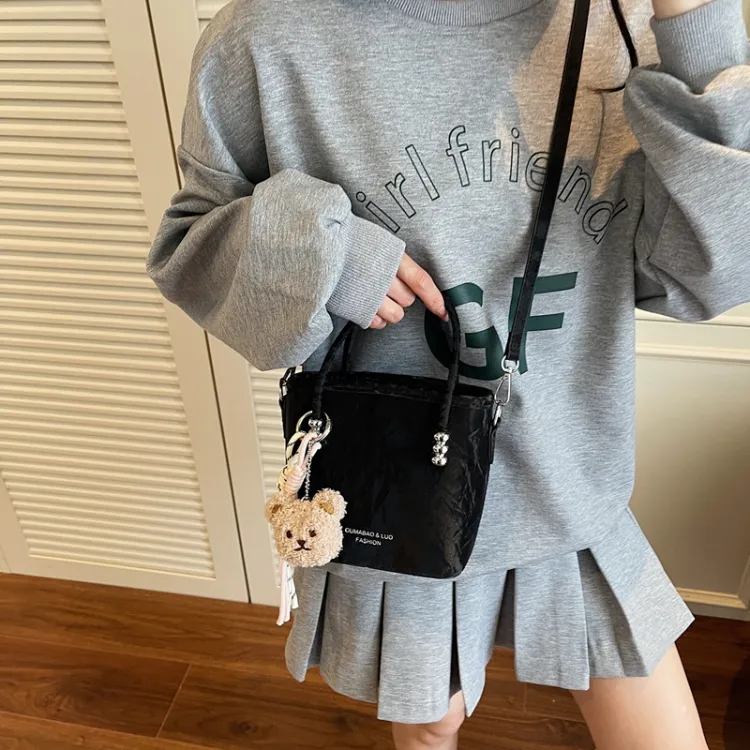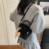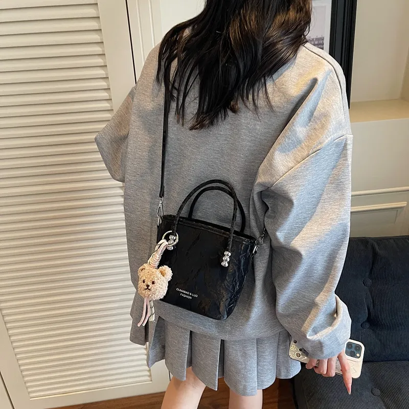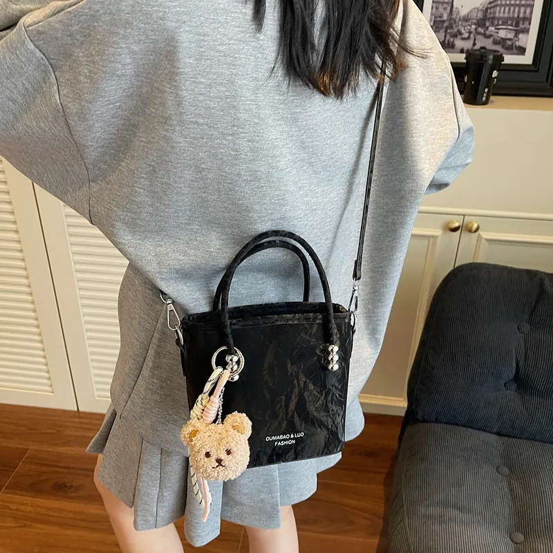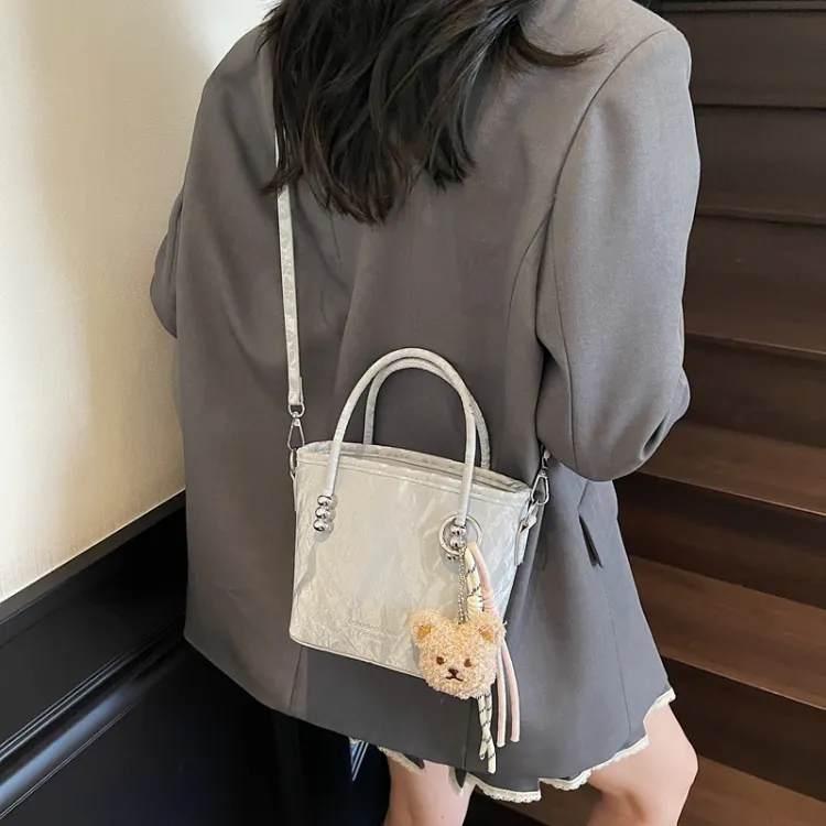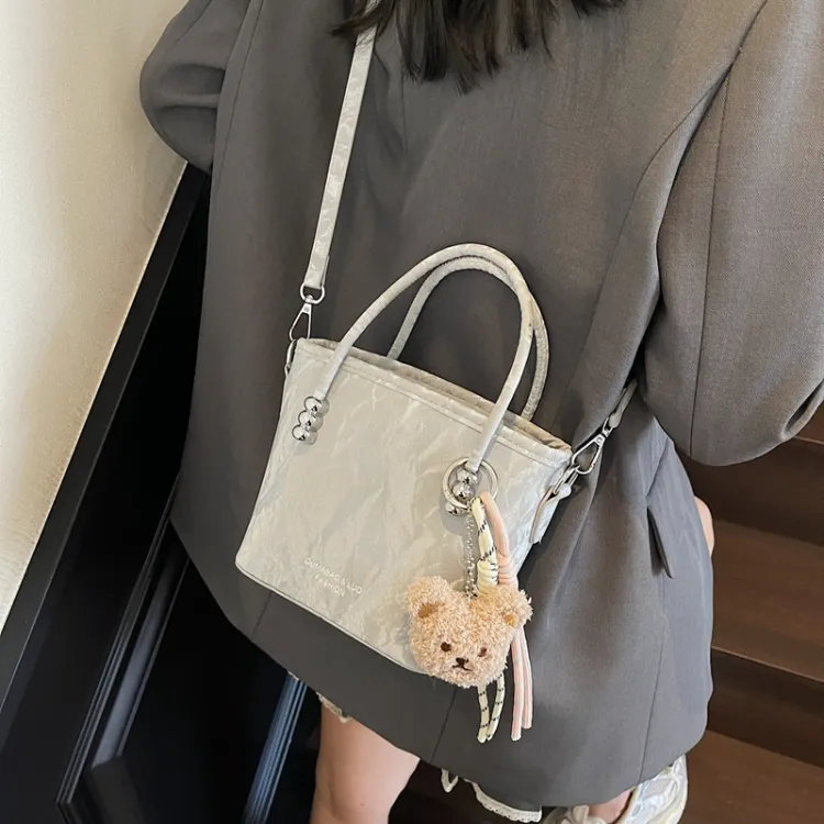 Meow in The Grass PU 숄더백 핸드백 레귤러 여성 핑크/블랙/아이보리/실버 - POIZON