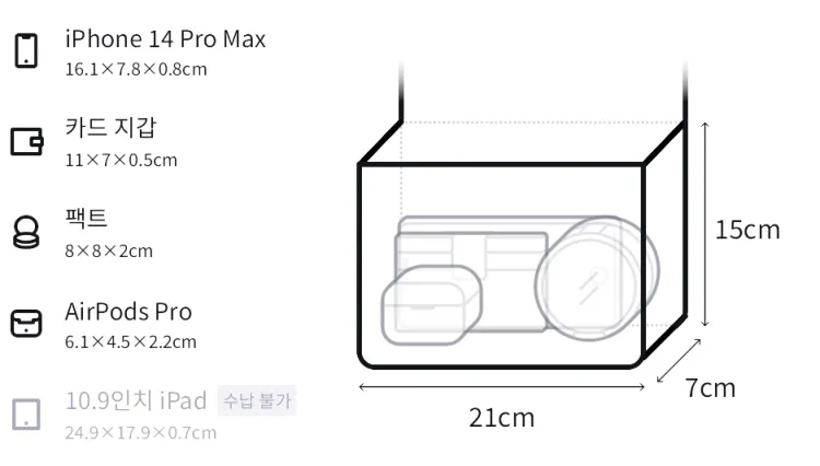 길이: 21cm, 너비: 7cm, 추천 신장: 15cm