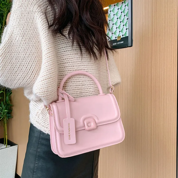 Meow in The Grass PU 스몰 스퀘어 백, 핸드백, 크로스바디 백 레귤러 여성 블랙/화이트/핑크/옐로우 - POIZON