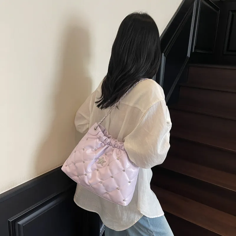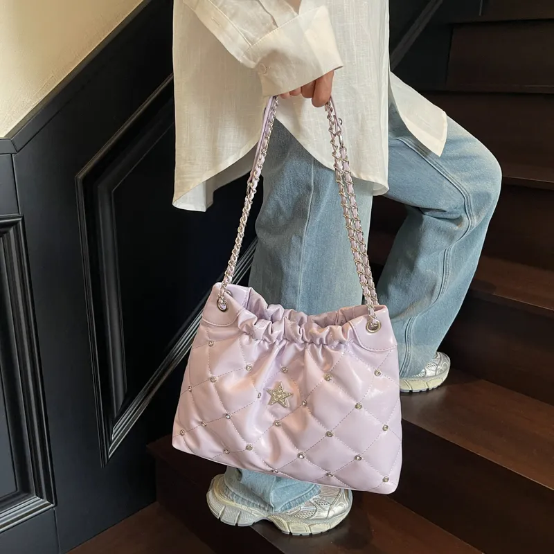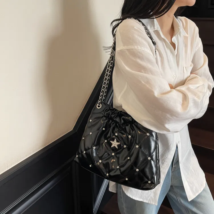 Meow in The Grass PU 토트 가방, 숄더 백 레귤러 여성 배색 - POIZON