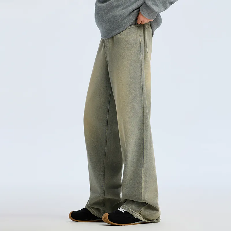 색상:와이드 레그 옐로우 머드 바지