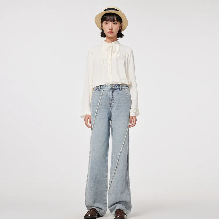 Metersbonwe 데님 라이트 블루 여성 청바지 - POIZON