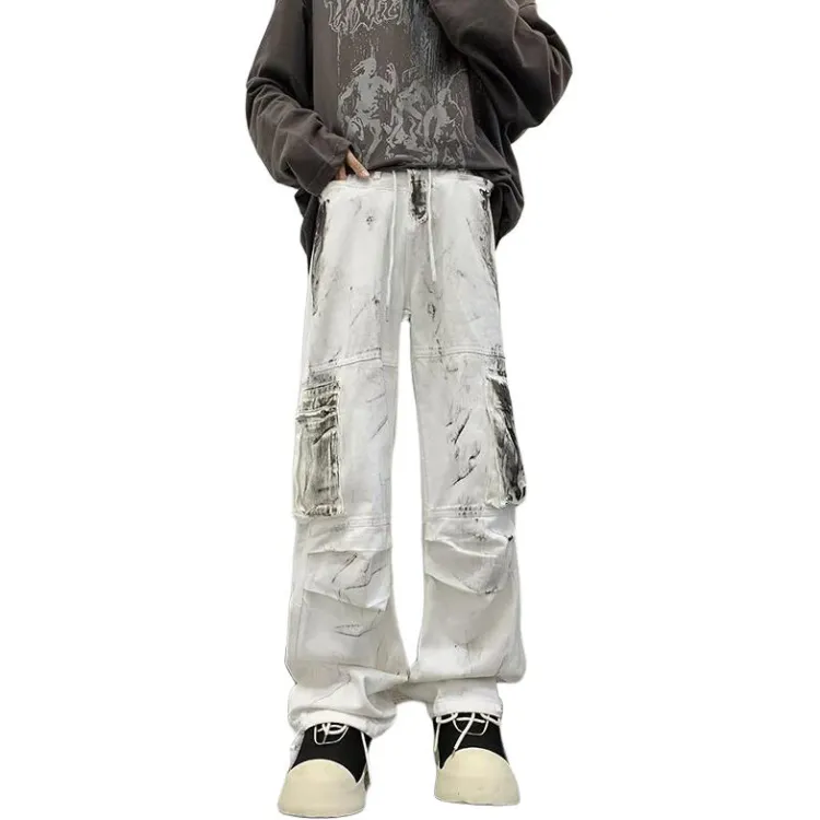 MGXEK 화이트 남녀공용 청바지 - POIZON