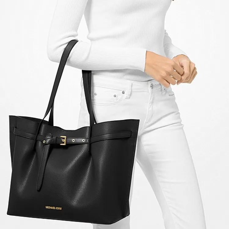 마이클코어스 에밀리아 가죽 토트 가방, 쇼핑백, 숄더 백, 핸드백 L 여성 블랙 - POIZON