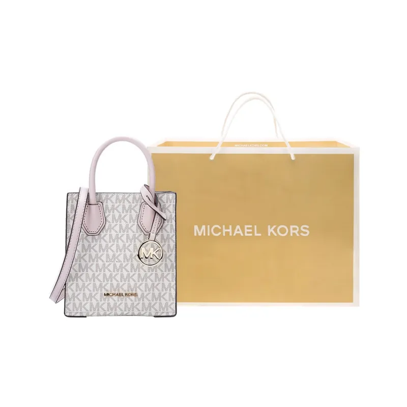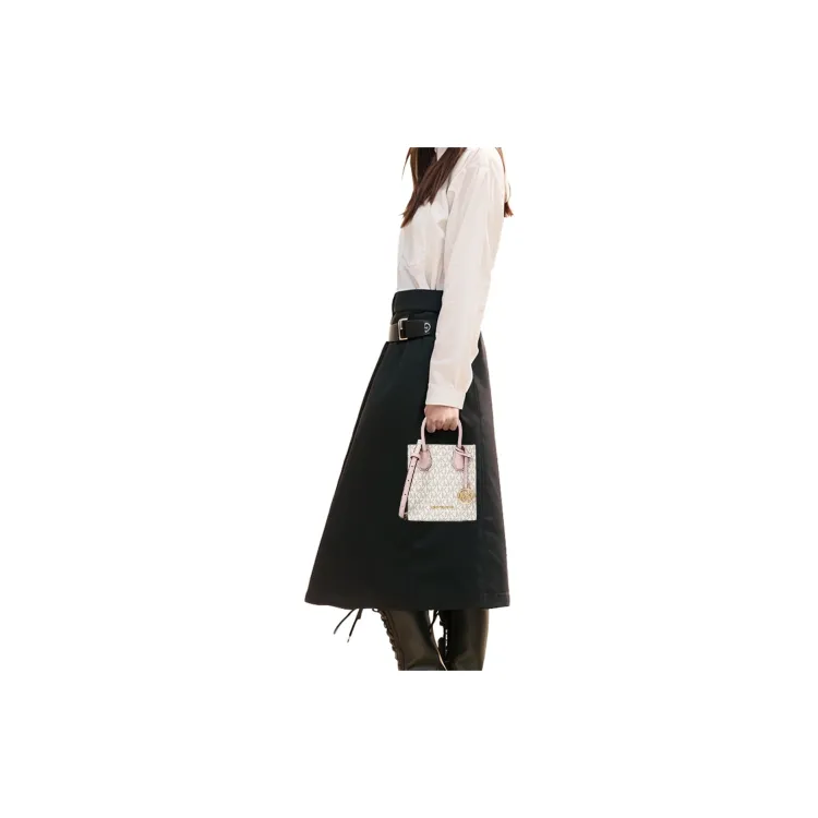 마이클코어스 머서 인조 가죽 시트 뮤직 백, 피아노 가방, <브랜드_1>e 어깨 크로스백, 핸드백 미니 여성 바닐라 화이트 & 체리 블라썸 핑크 - POIZON