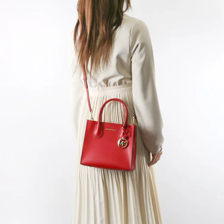 마이클코어스 머서 리치 패턴 가죽 토트 가방, 쇼핑백, 핸드백, 숄더 백, 크로스백 M 여성 브라이트 레드 - POIZON