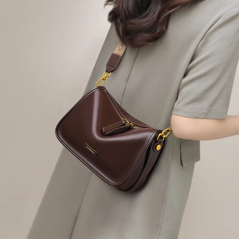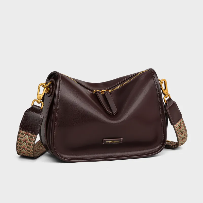 MILLIE'S 소가죽 숄더 백, 크로스 백 여성 와인 커피 - POIZON