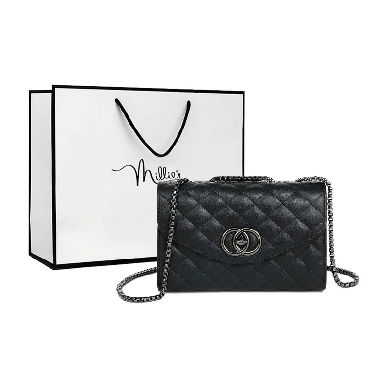 MILLIE'S 소가죽 겨드랑이 원 숄더 크로스백, 스몰 스퀘어 백 레귤러 여성 블랙 - POIZON