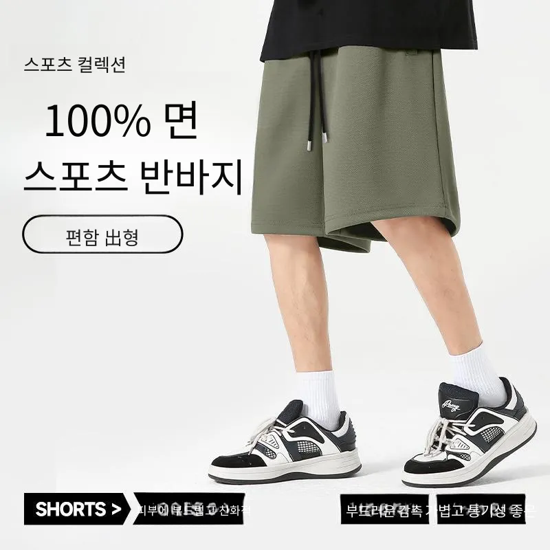 [100% 순면] 카키 (M45 잉크 그레이 스마일 프린트 하의 오른쪽 B 로고)