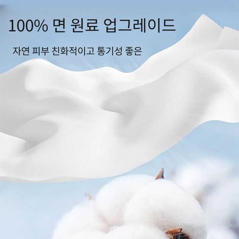 본체: 100% 순면; 항균: 64% 면, 36% 폴리에스터; 소로나: 70% 면, 30% 폴리에스터