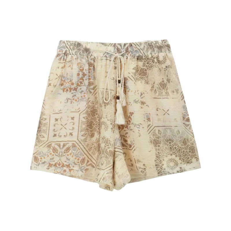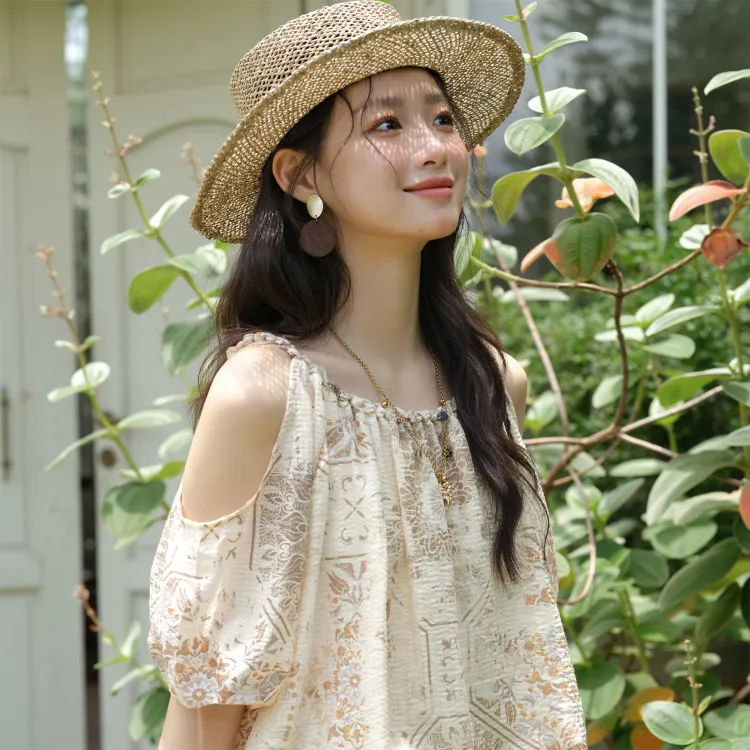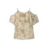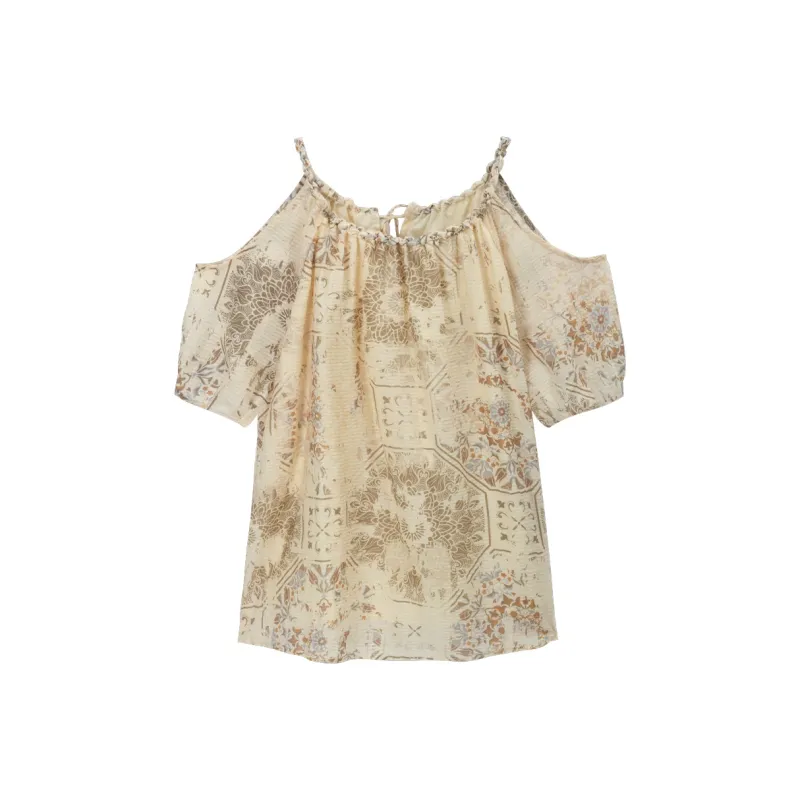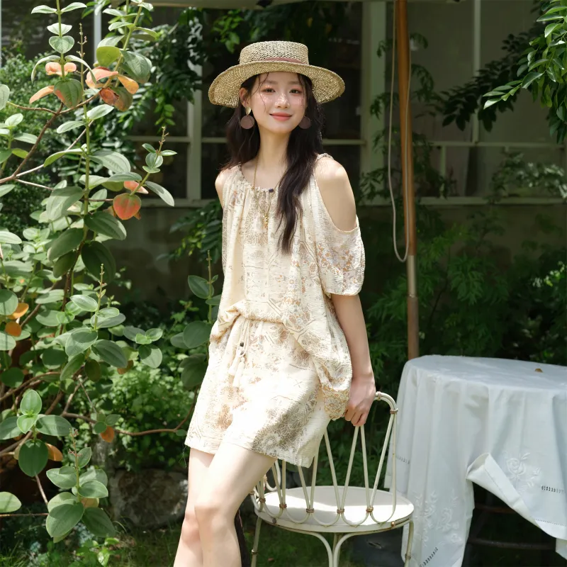 의류 세트 (오프-어깨 프린팅 상의 + 프린지 반바지)