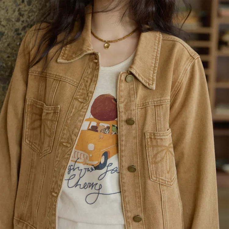 MISHOW 라이트 커피 여성 데님 자켓 - POIZON