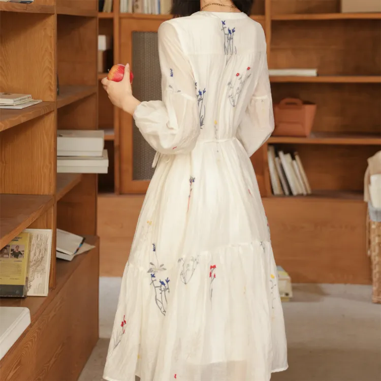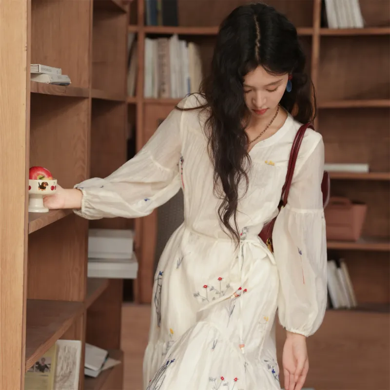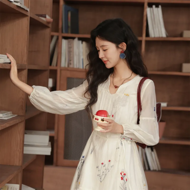 MISHOW 아이보리 여성 긴팔 원피스 - POIZON