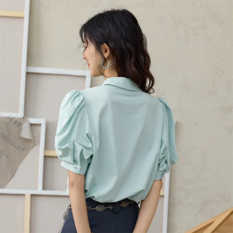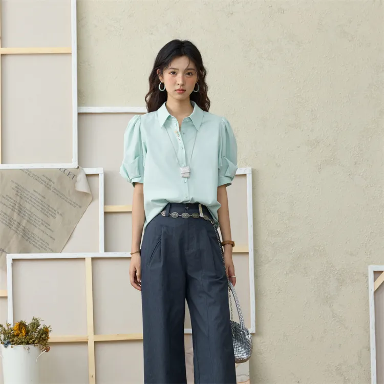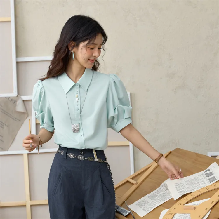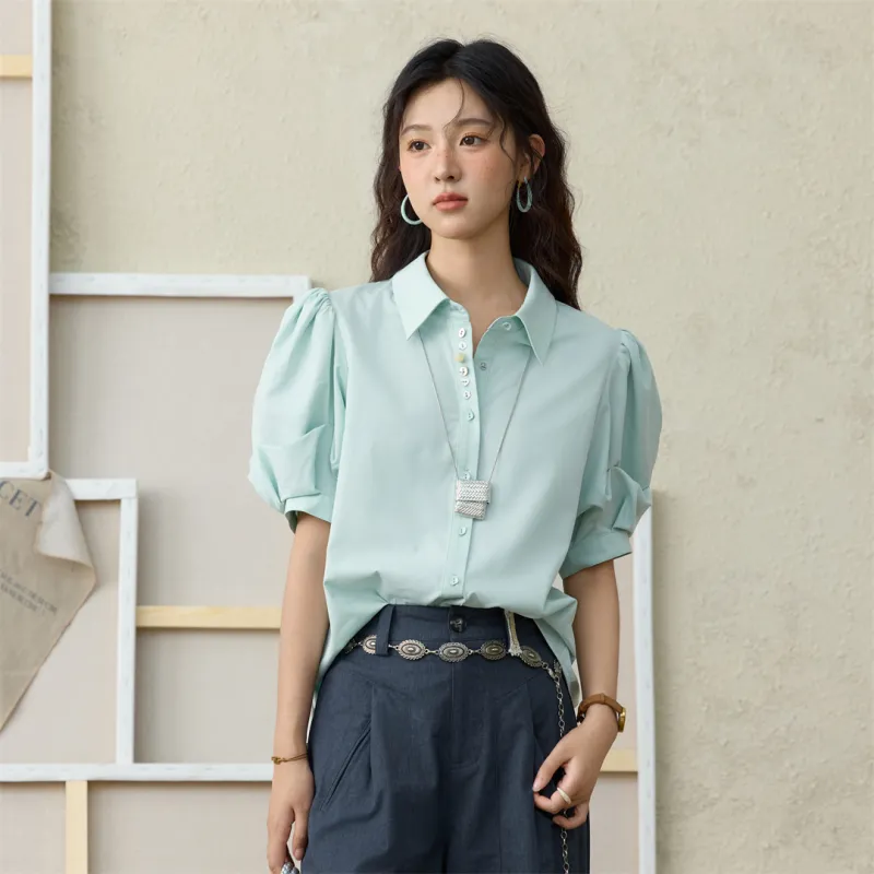 MISHOW 아쿠아 그린 블라우스 여성 셔츠 - POIZON
