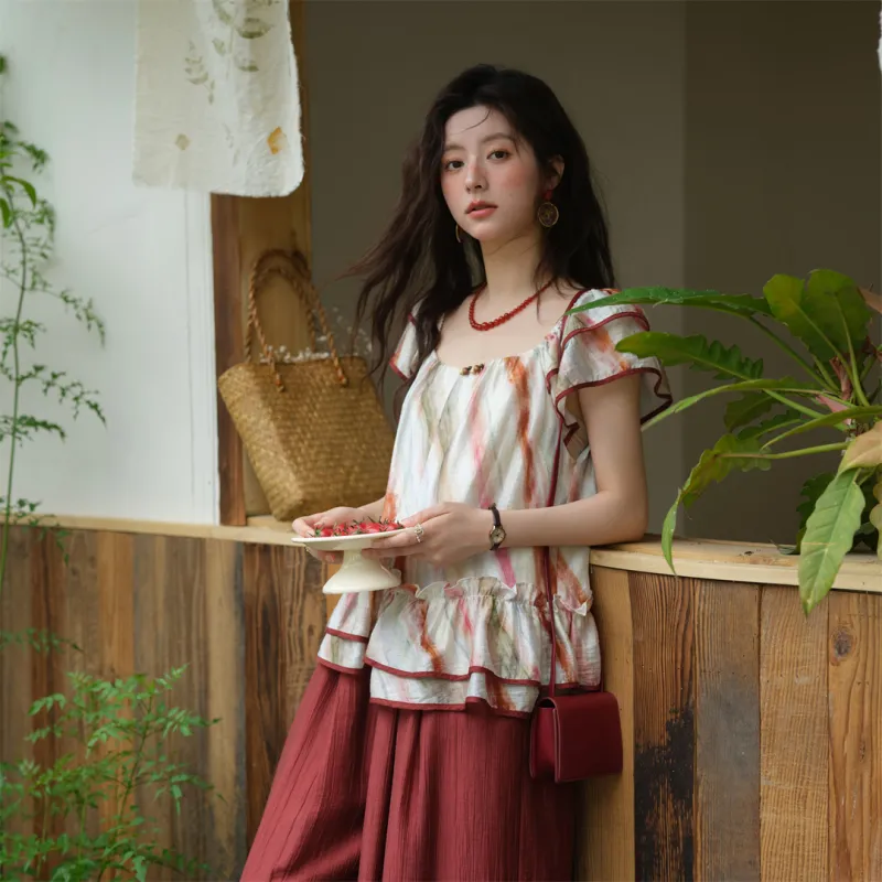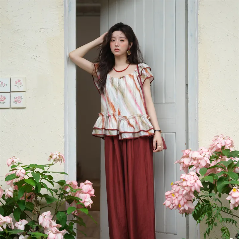 MISHOW 멀티컬러 줄무늬 상의 여성 셔츠