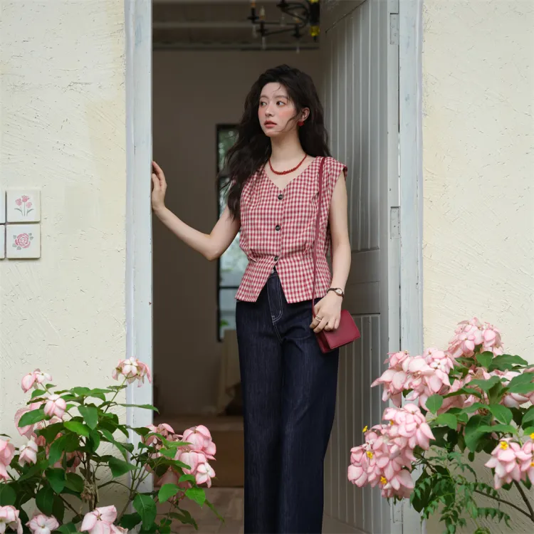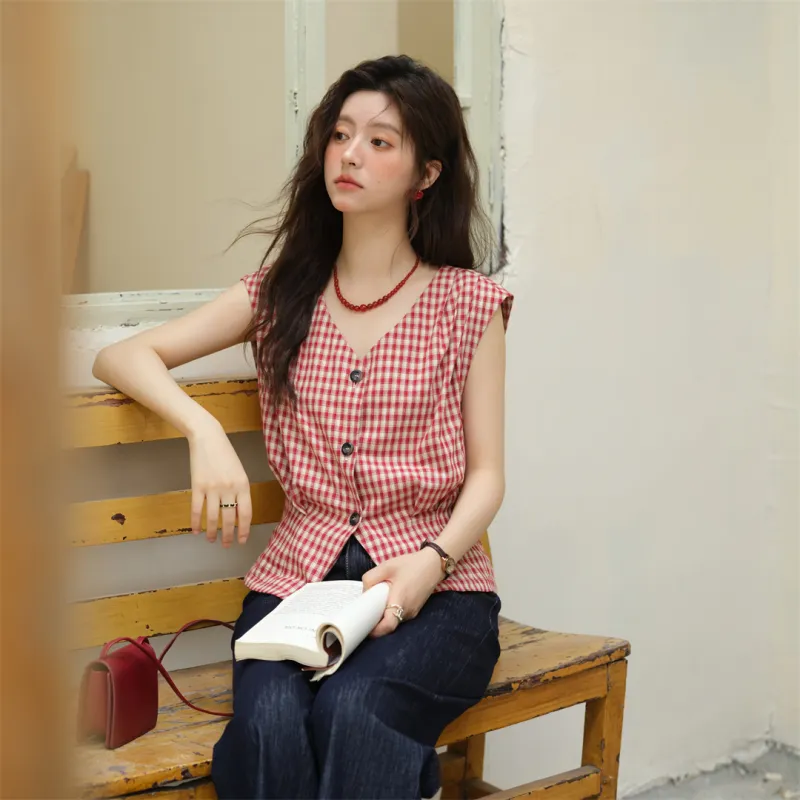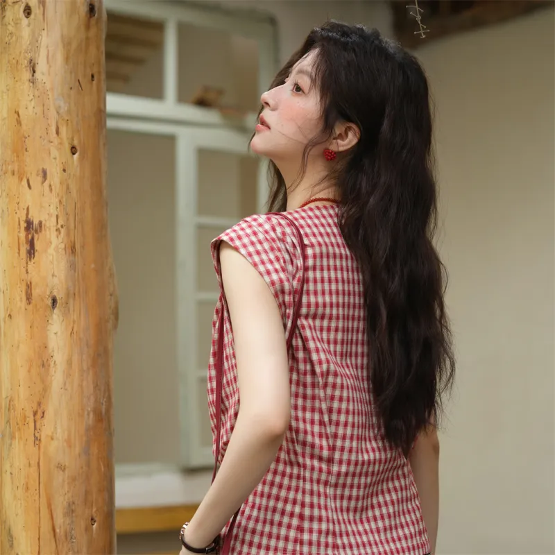 MISHOW 레드 체크 상의 여성 셔츠 - POIZON