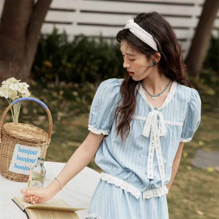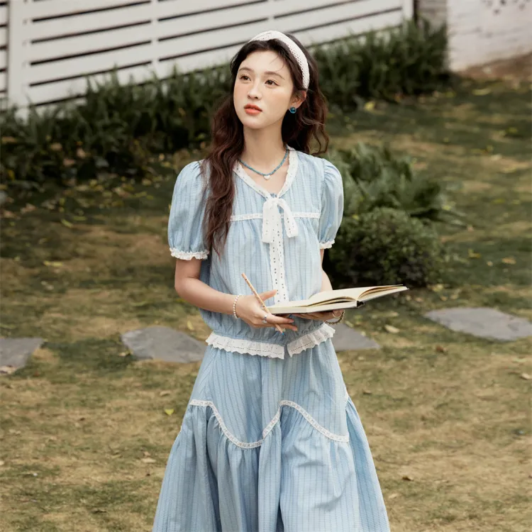 MISHOW 블루 여성 투피스 스커트 세트 - POIZON