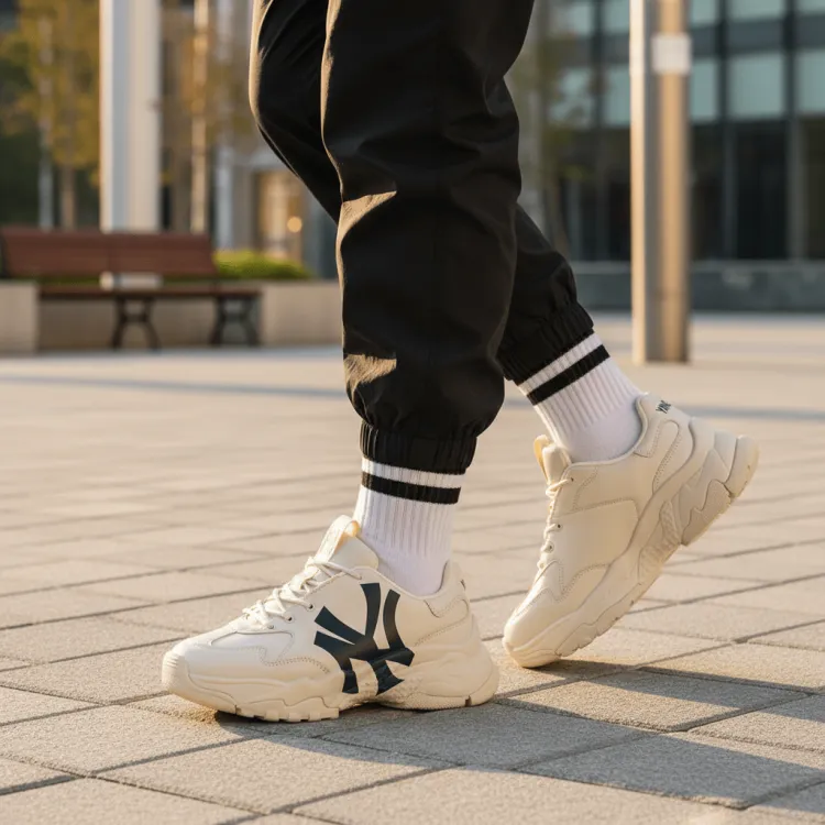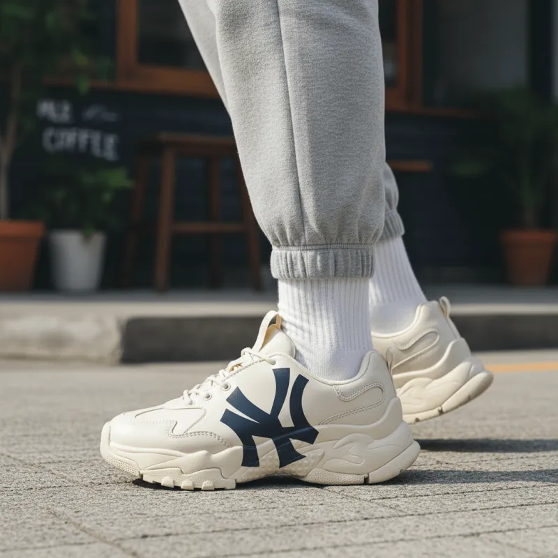 MLB 빅 공 청키 바레 눈 3D 미끄럼방지 로우탑 청키 스니커즈 남녀공용 베이지 옐로우