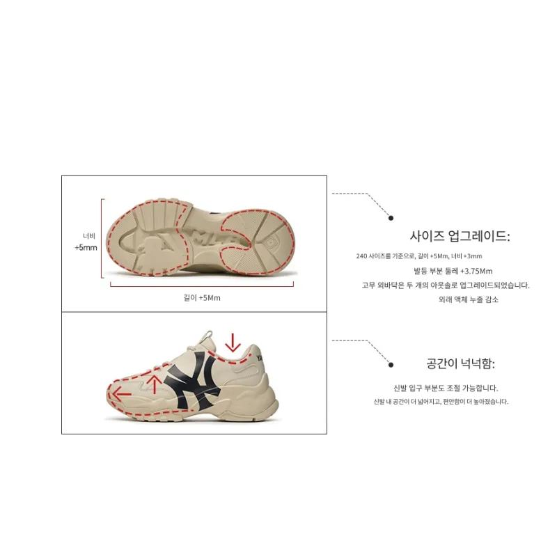 MLB 빅 공 청키 로우탑 청키 스니커즈 남녀공용 베이지 옐로우