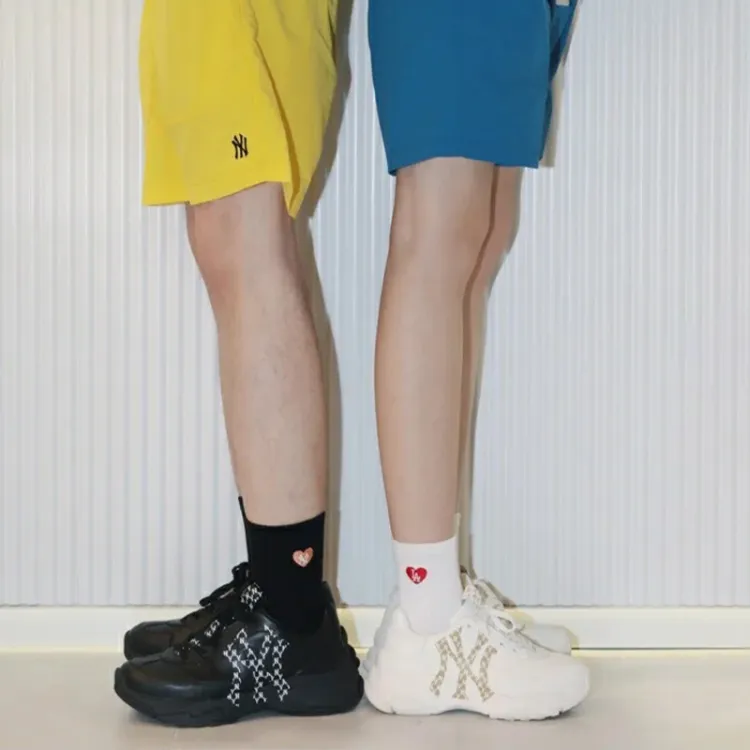 MLB 빅 공 청키 모노그램 Lt 로우탑 청키 스니커즈 남녀공용 화이트 골드 - POIZON