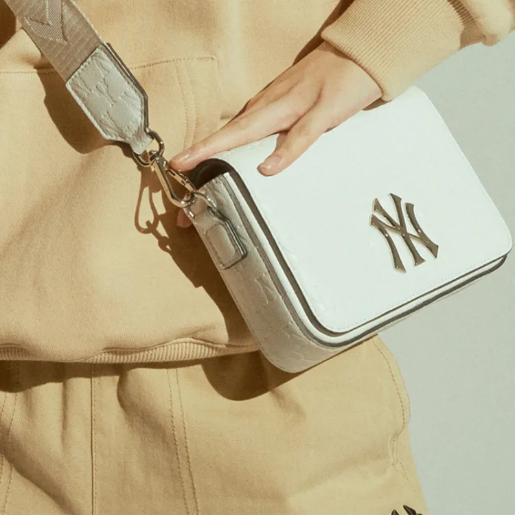 MLB 모노그램 컬렉션 면 포셰트, <브랜드_1>e 어깨 크로스백 레귤러 남녀공용 크림 화이트 - POIZON