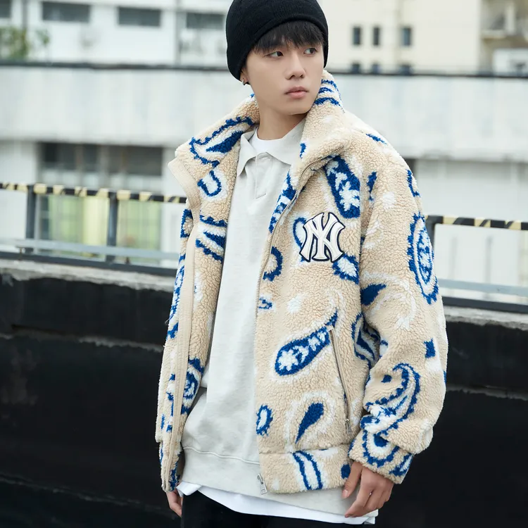 MLB 뉴욕 양키스 라이트 베이지 남녀공용 벨벳 재킷 - POIZON