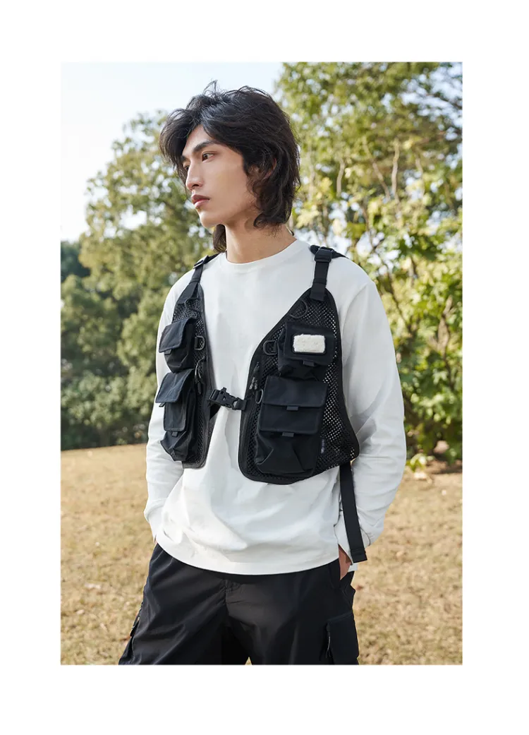 MOBI GARDEN 나이트 블랙 남녀공용 조끼 - POIZON