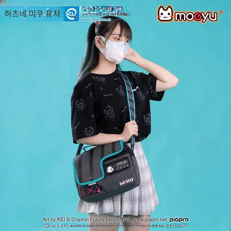 MOEYU 하츠네 미쿠 옥스퍼드 애니메이션 굿즈 Miku <브랜드_1> 어깨 크로스백, 핸드백 레귤러 남녀공용 블랙 - POIZON
