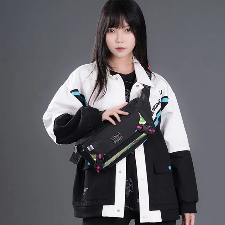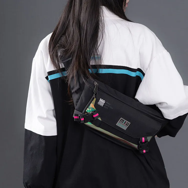 MOEYU PU 패치워크 옥스퍼드 패니 팩 레귤러 남녀공용 블랙