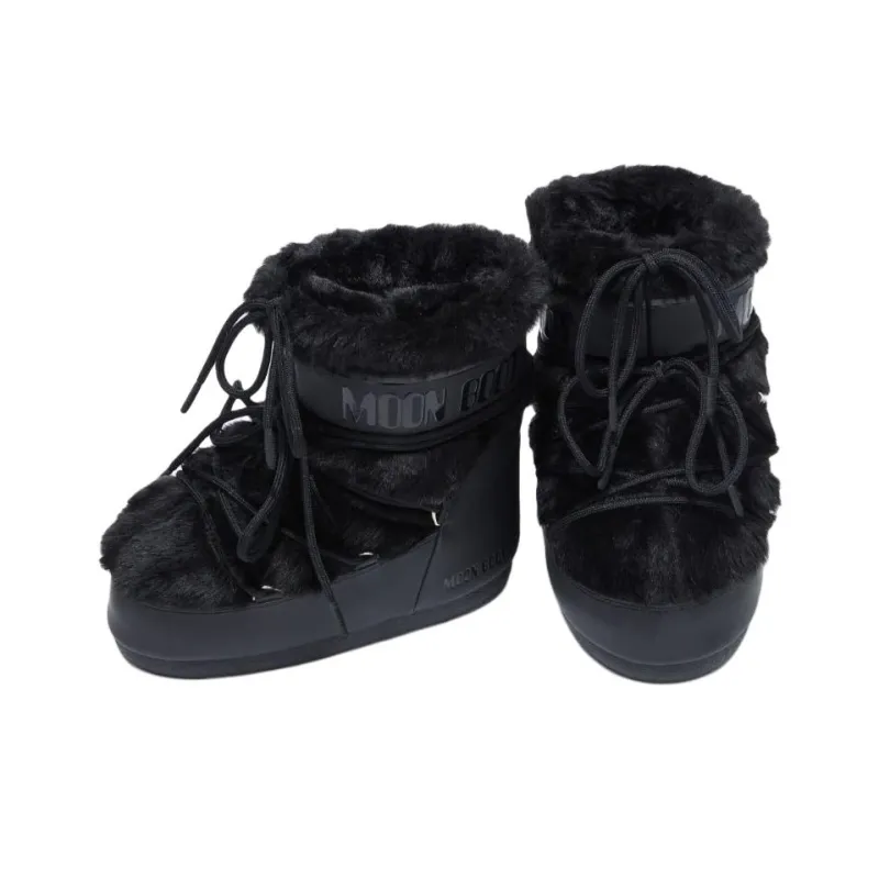 (W) 문부츠 아이콘 로우 폭스퍼 부츠 블랙 - POIZON