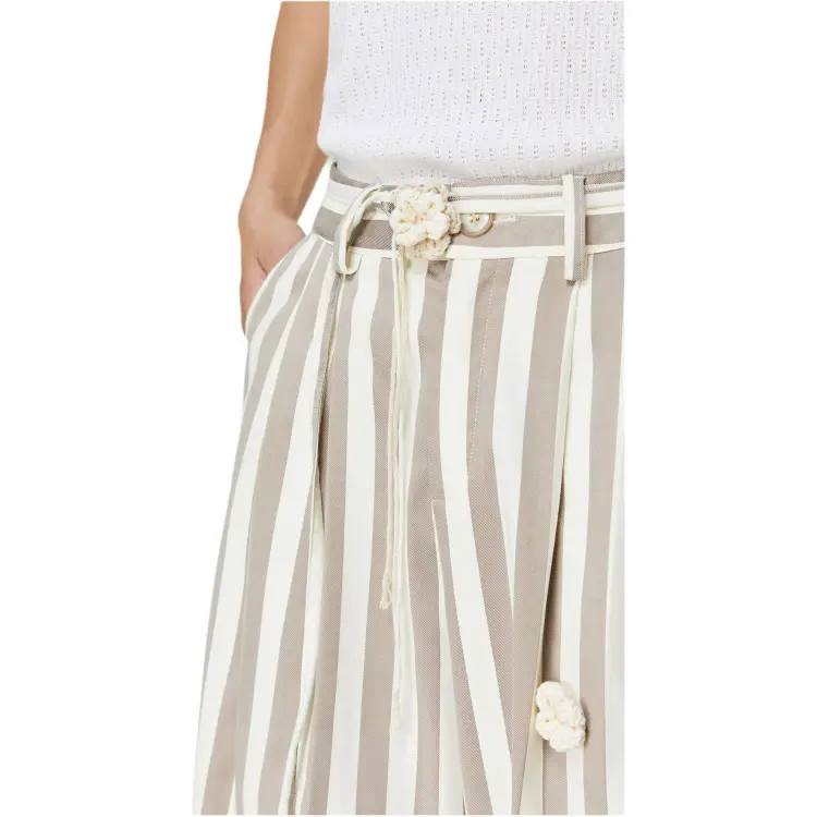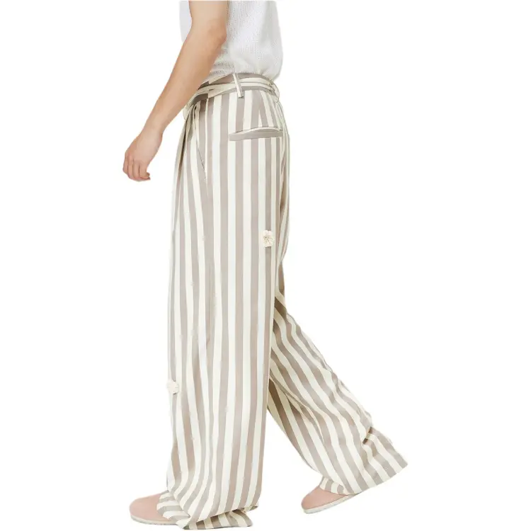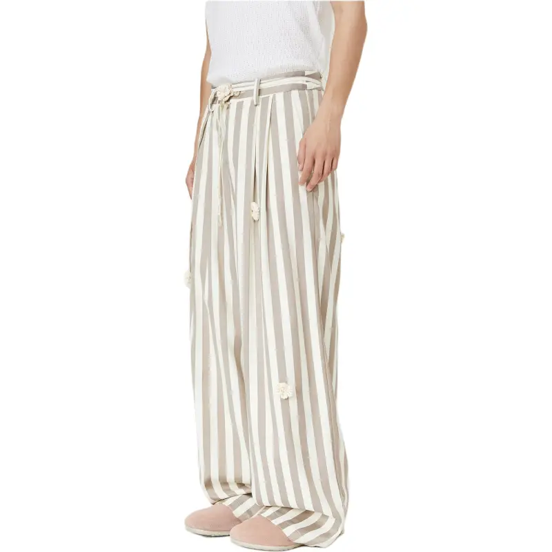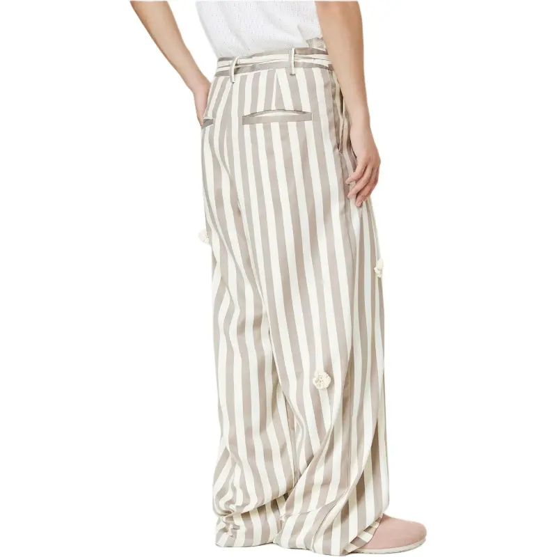 MostwantedLab 정장 바지 남녀공용 화이트 그레이 스트라이프 패턴
