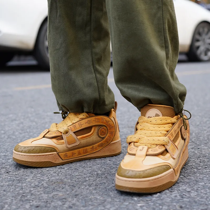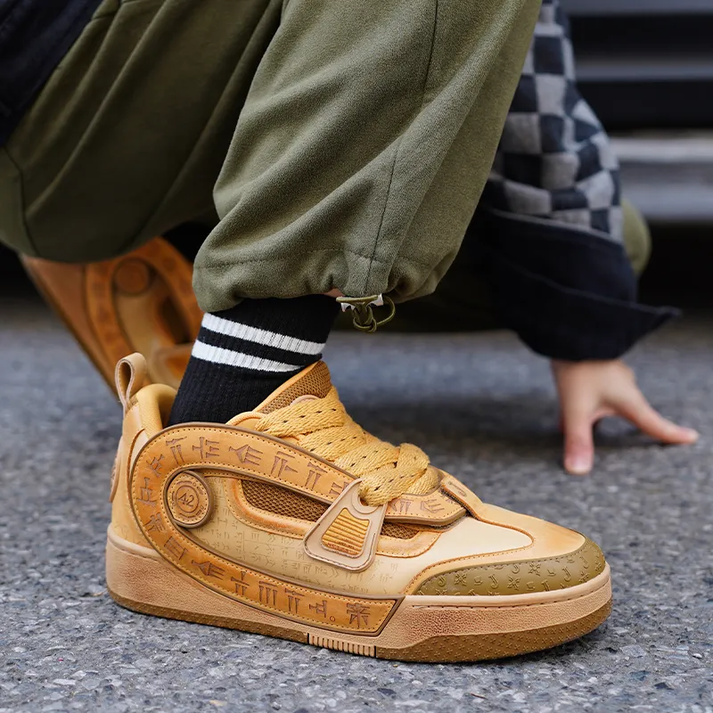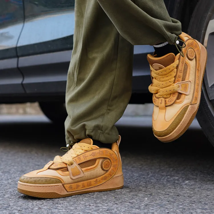 MRJ 미끄럼 방지+내마모성 로우탑 스케이트보드 신발 남녀공용 옐로우