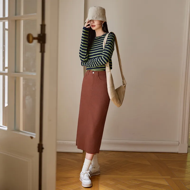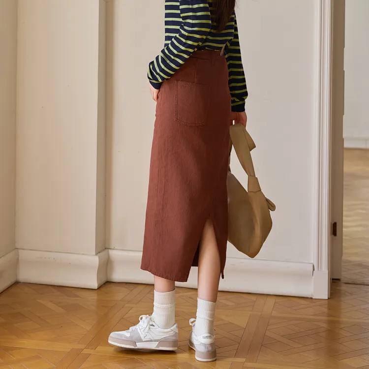 MT 버건디 여성 캐주얼 롱 스커트 - POIZON