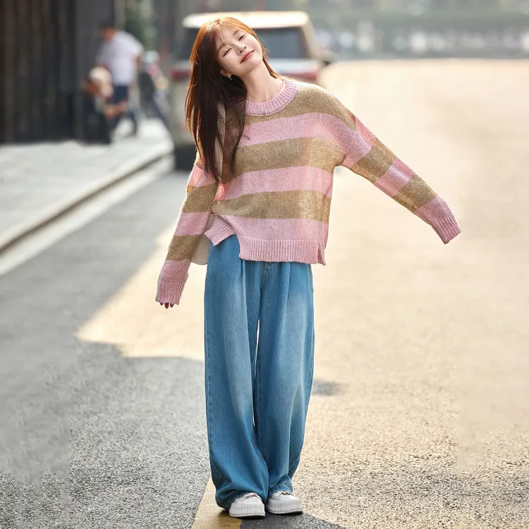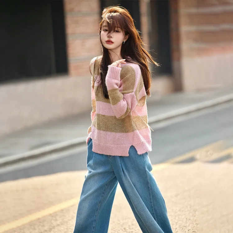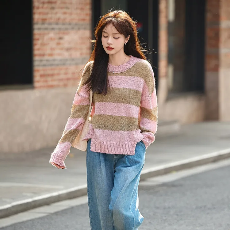 MT 핑크 스트라이프 패턴 색상 여성 니트웨어