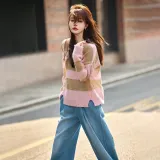 MT 핑크 스트라이프 패턴 색상 여성 니트웨어 - POIZON