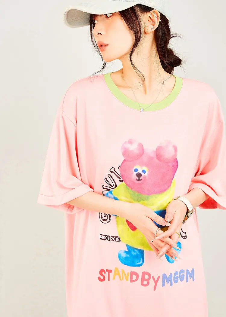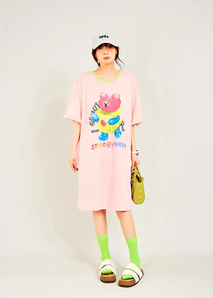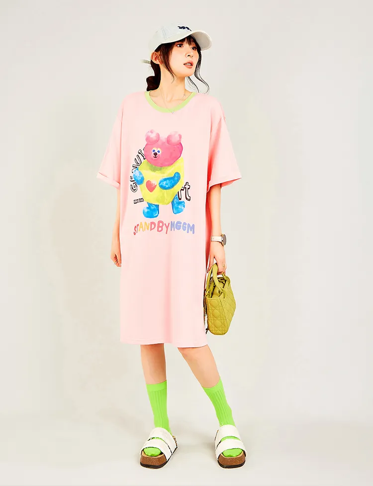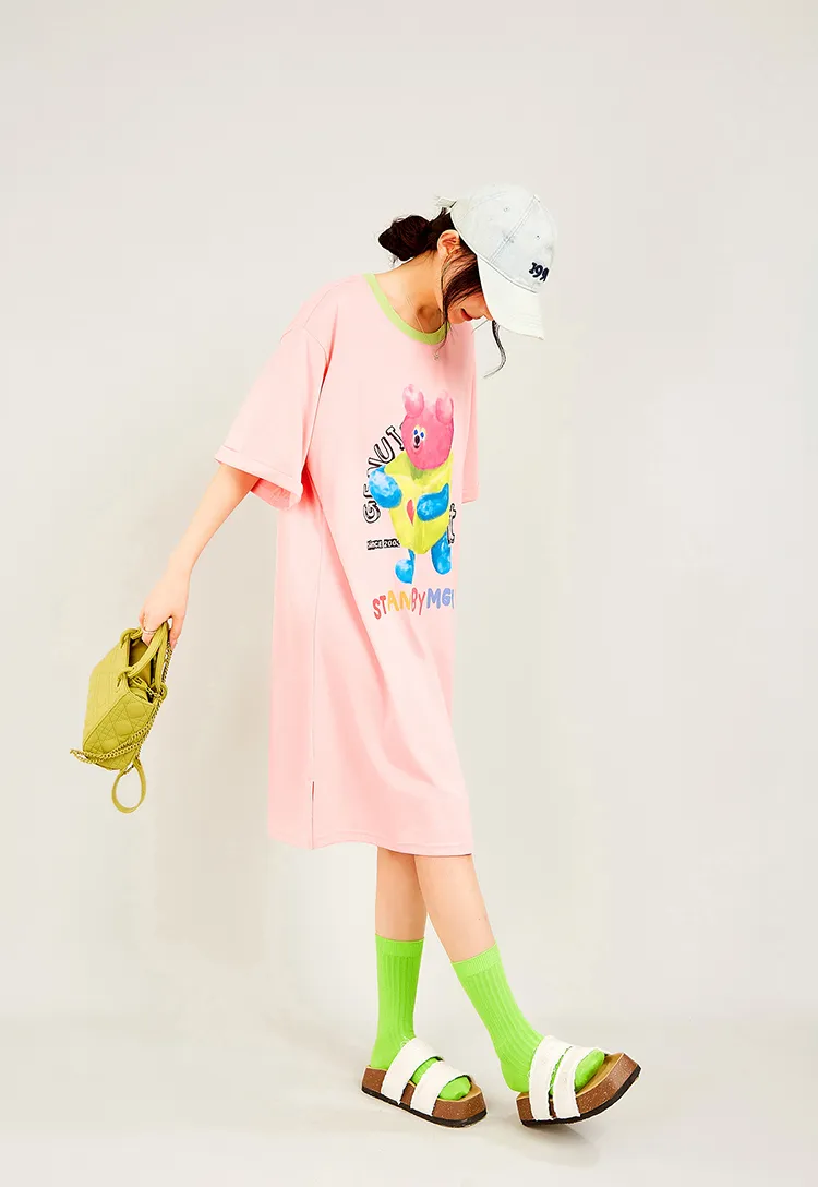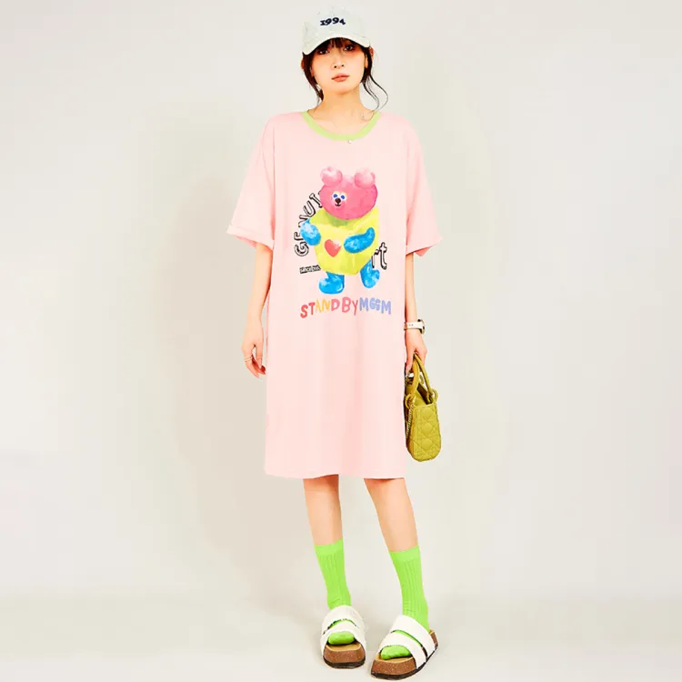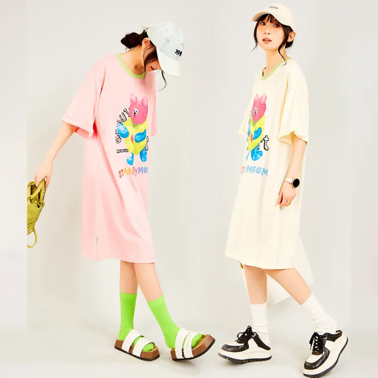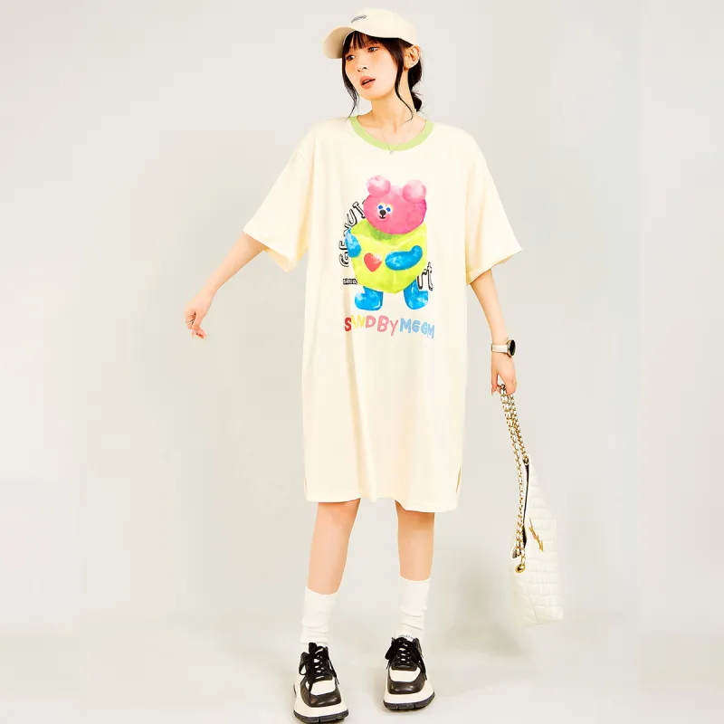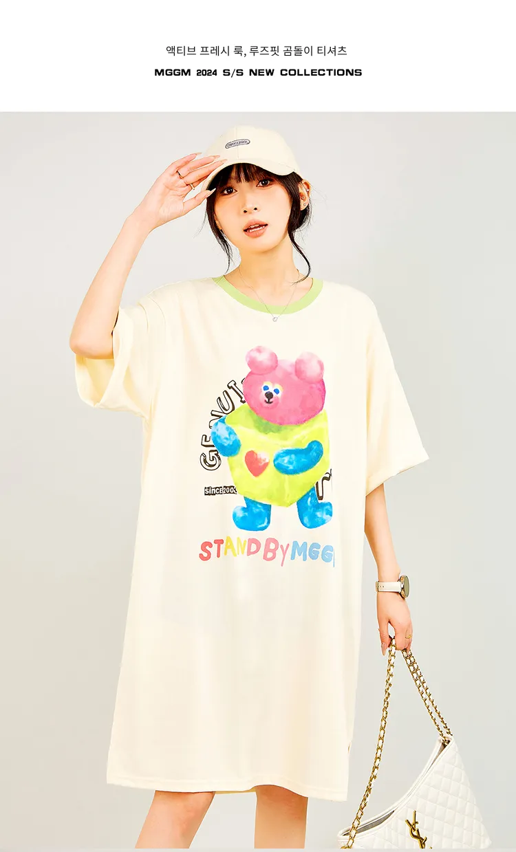 MUGUOGUOMU 2024 여름 반팔 원피스 루즈핏 여성