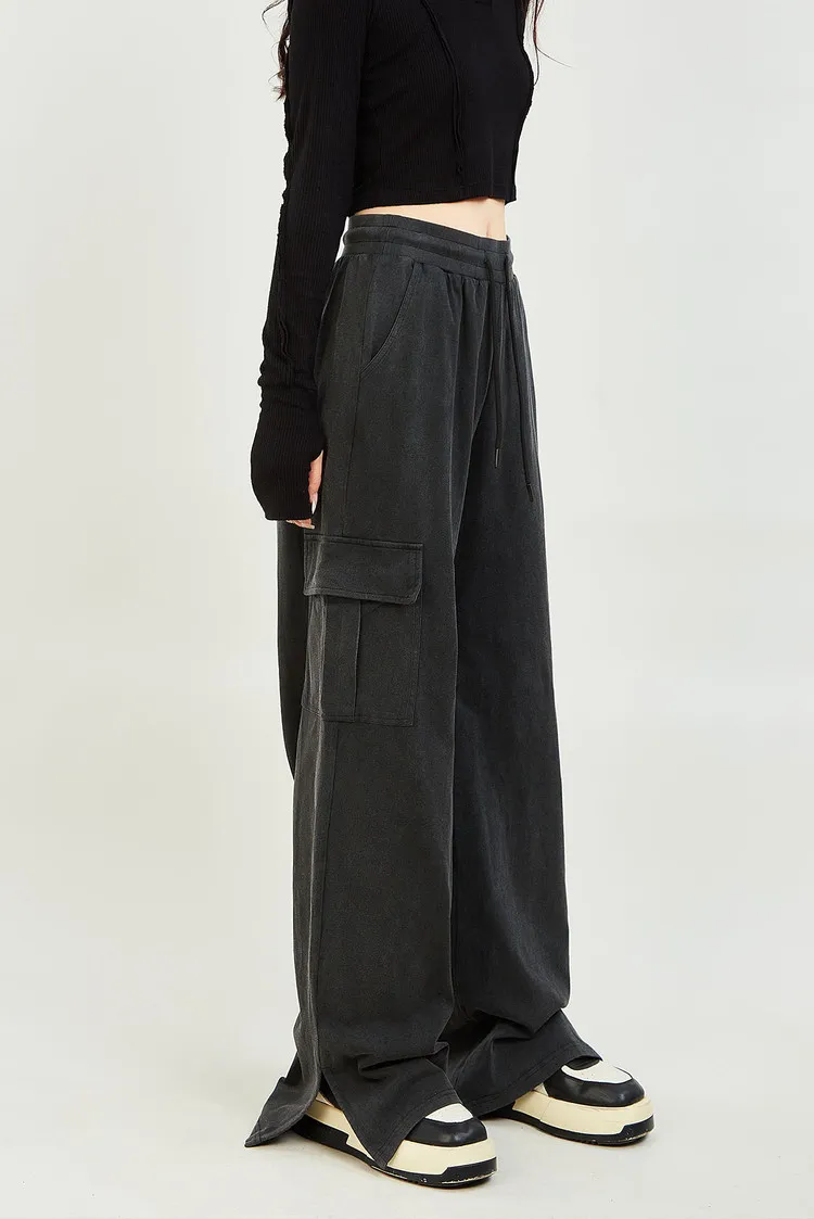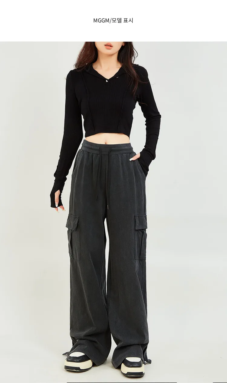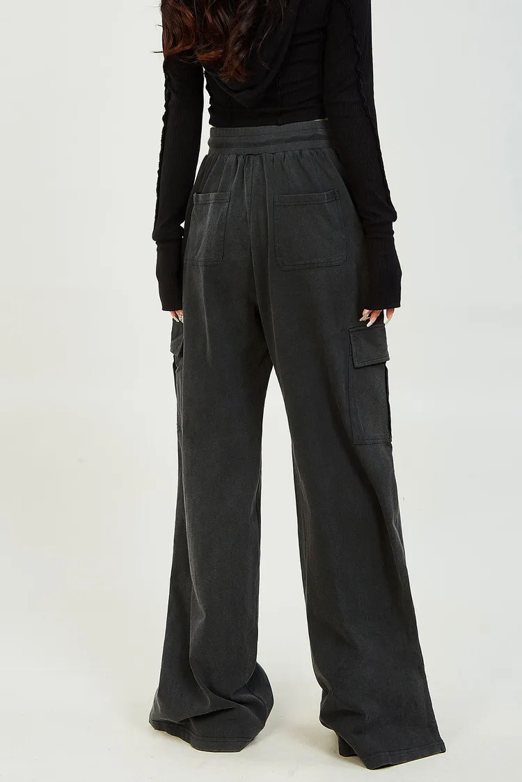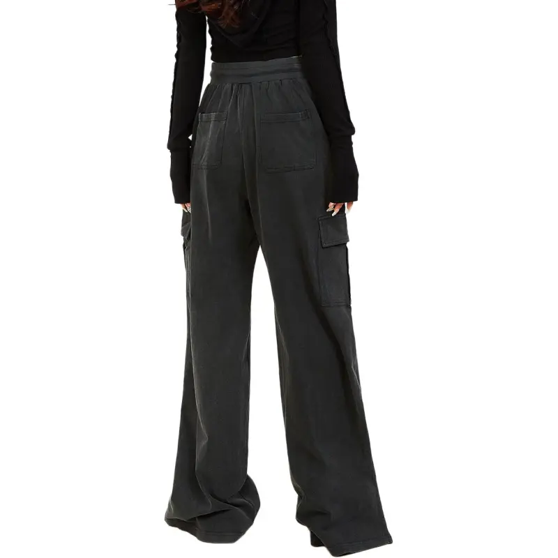 MUGUOGUOMU 빈티지 블랙 여성 캐주얼 팬츠