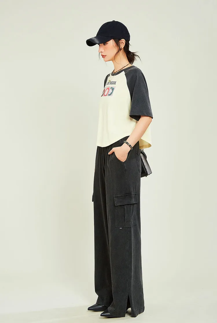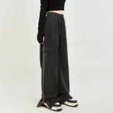 MUGUOGUOMU 빈티지 블랙 여성 캐주얼 팬츠 - POIZON