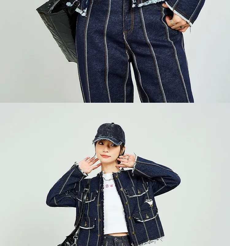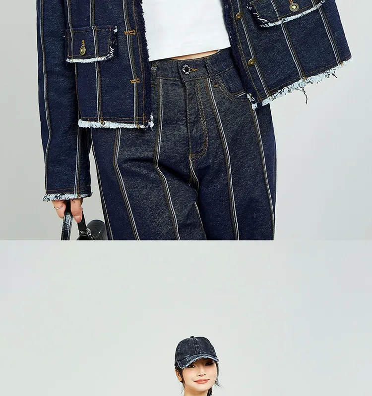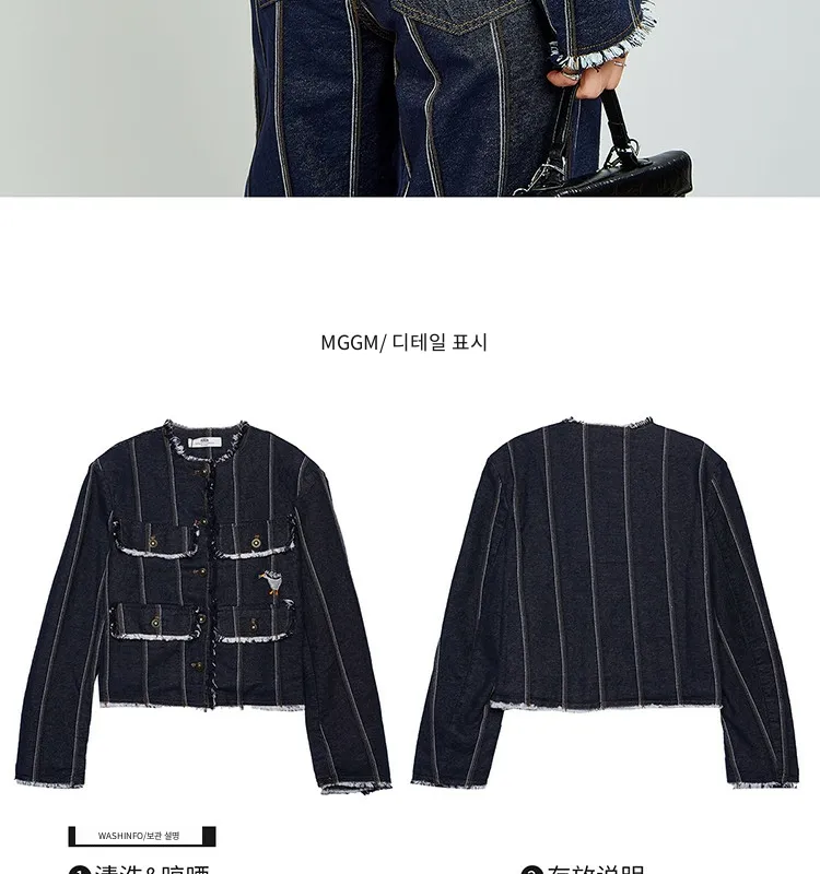 MUGUOGUOMU 딥 데님 블루 여성 크롭 코트