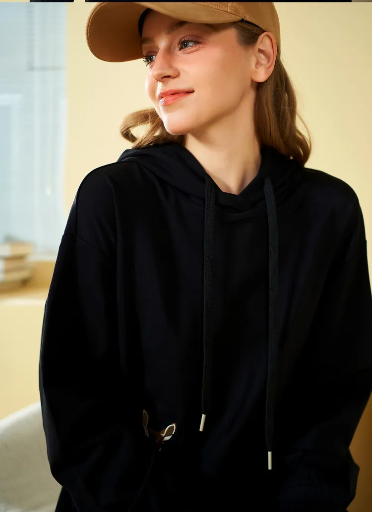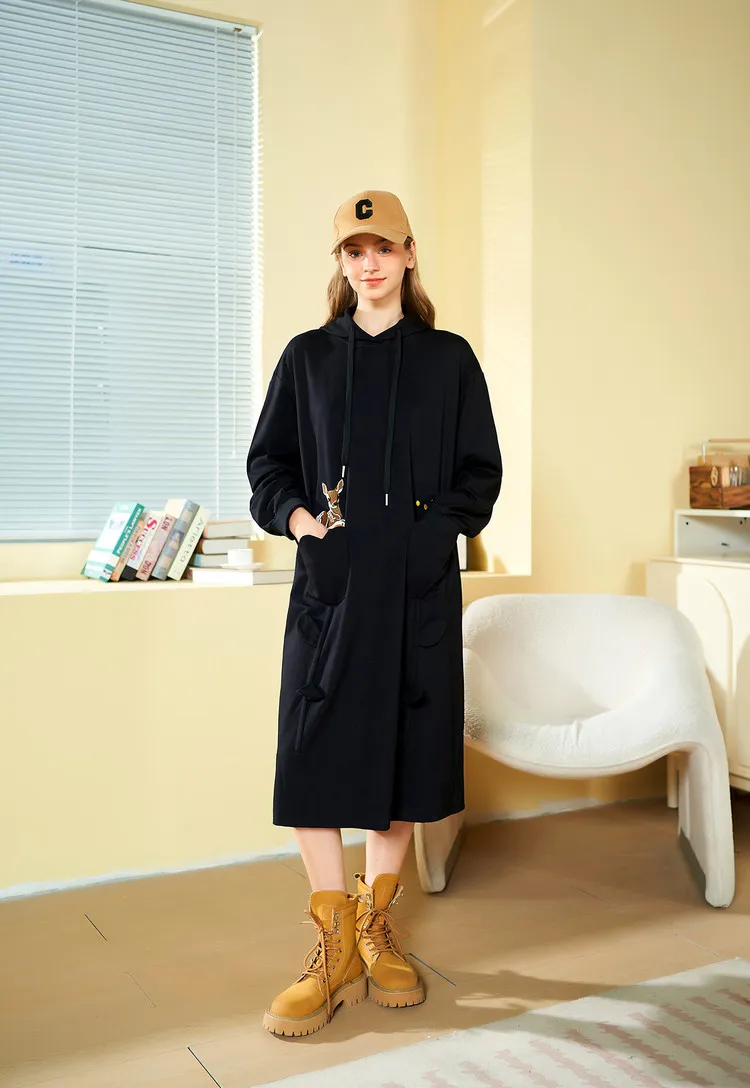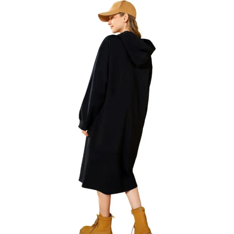 MUGUOGUOMU 블랙 여성 긴팔 원피스