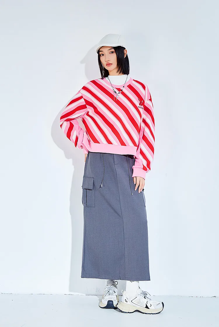 색상:핑크 화이트 스트라이프 패턴