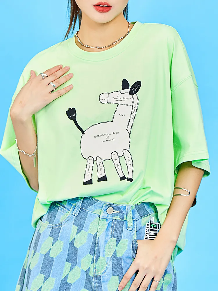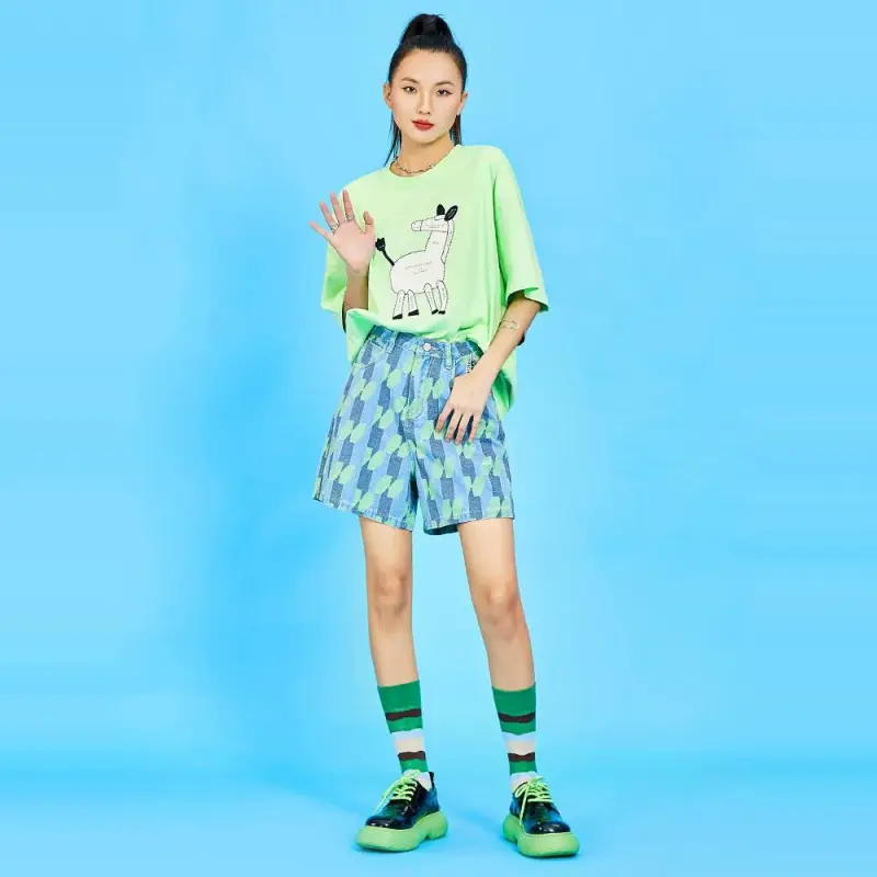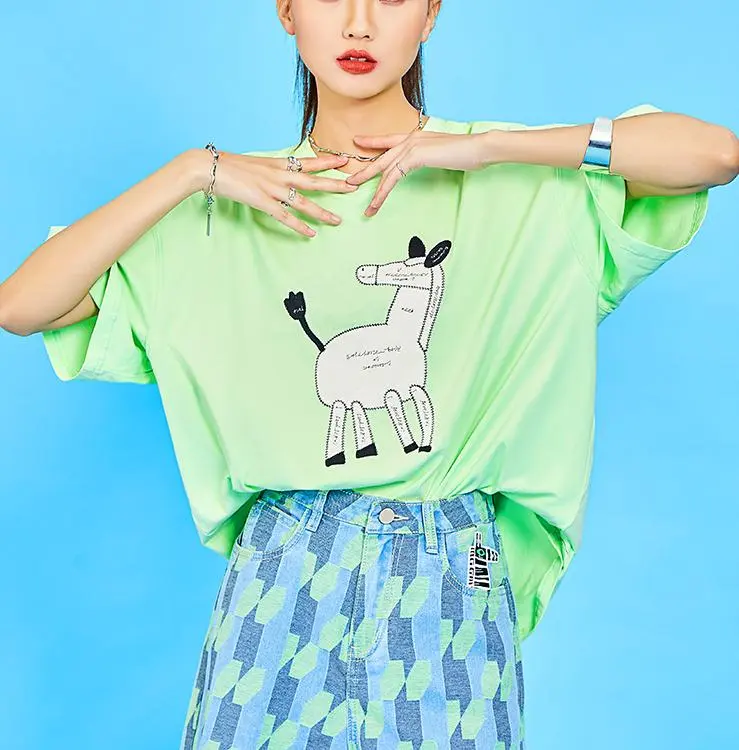 MUGUOGUOMU 초여름 그린 여성 티셔츠