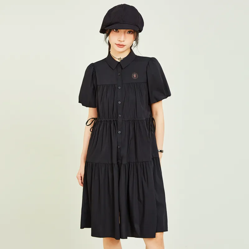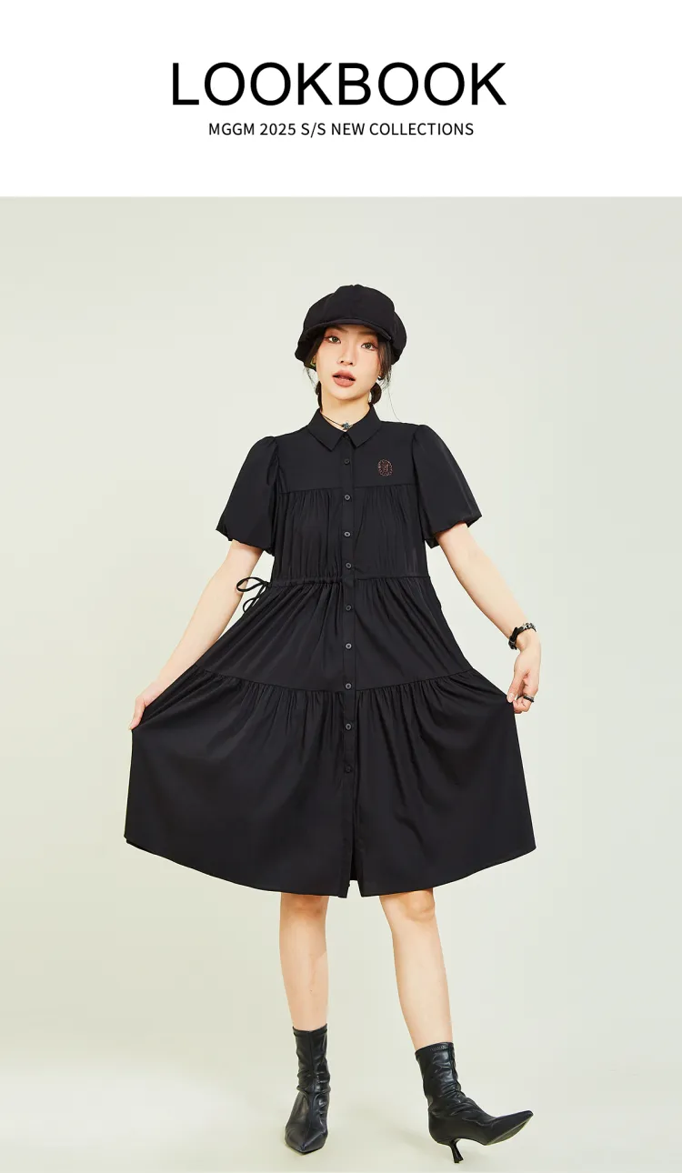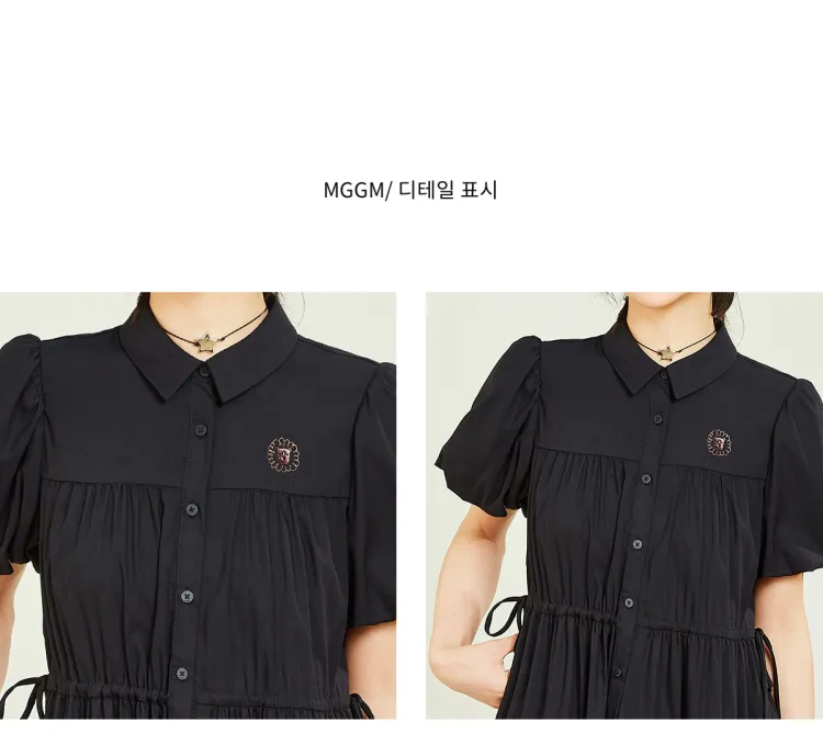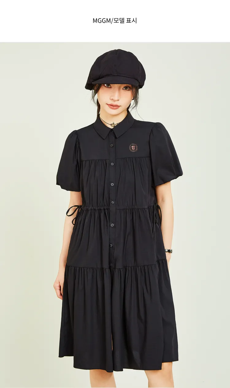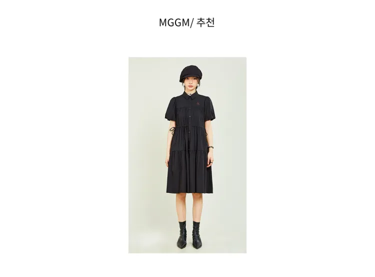 MUGUOGUOMU 여름 반팔 원피스 허리 셔링 여성 블랙 - POIZON