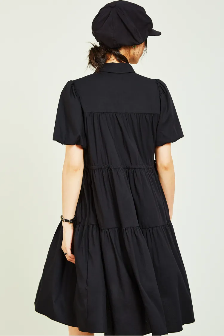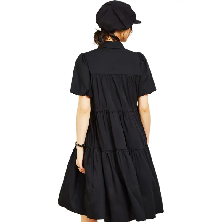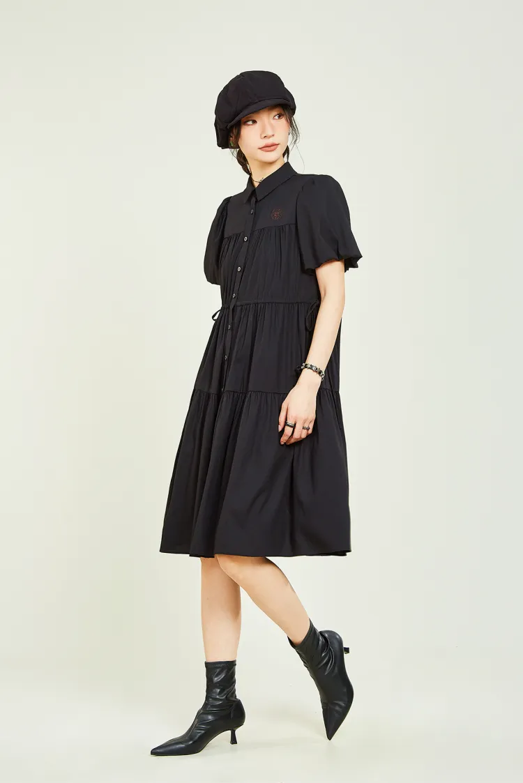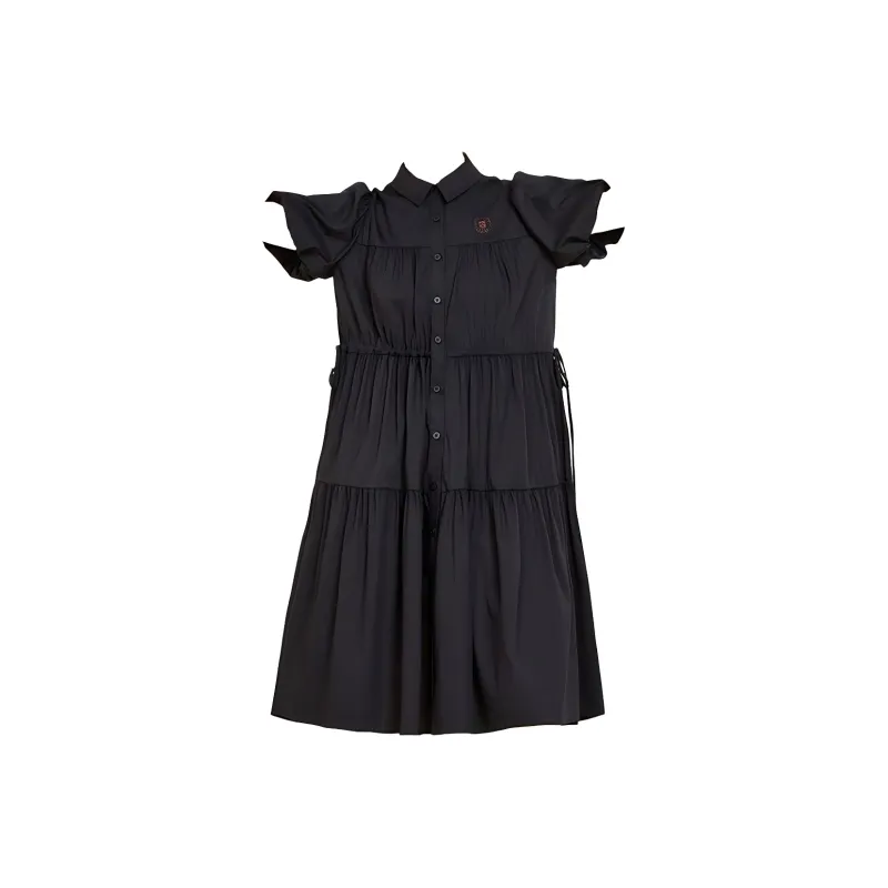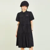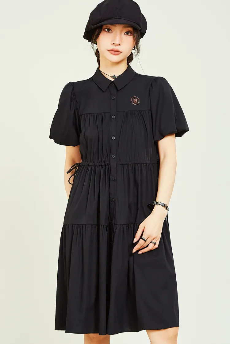 MUGUOGUOMU 여름 반팔 원피스 허리 셔링 여성 블랙 - POIZON