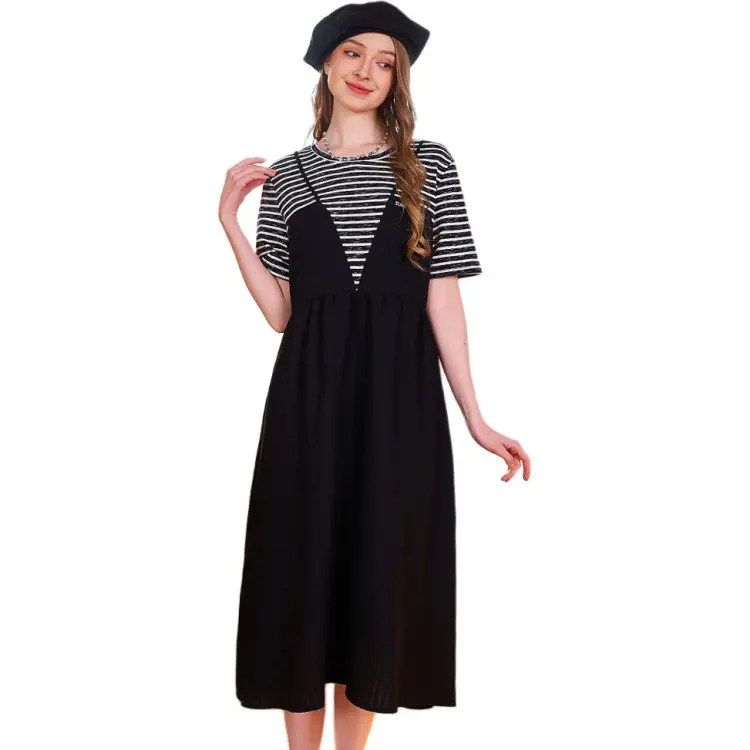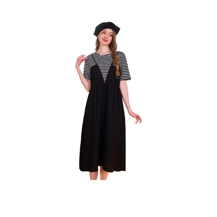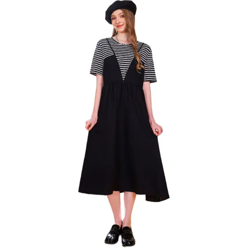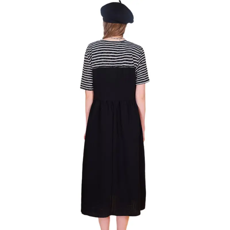 MUGUOGUOMU 블랙 여성 반팔 원피스