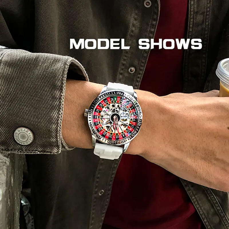 MUKUO 쿨 플레이 컬렉션 로테이팅 개성 있는 울트라 니치 와 내추럴 프레젠스 오토매틱 메커니컬 무브먼트 실리콘 스트랩 중국 시계 남성용 시계 레드 시계 다이얼 - POIZON