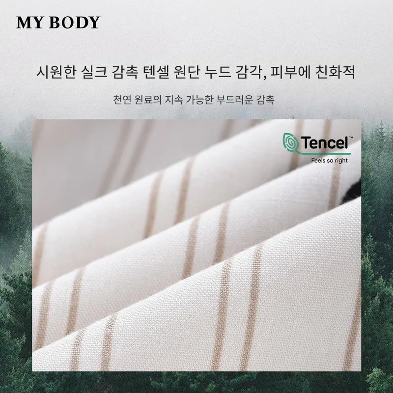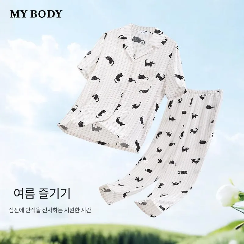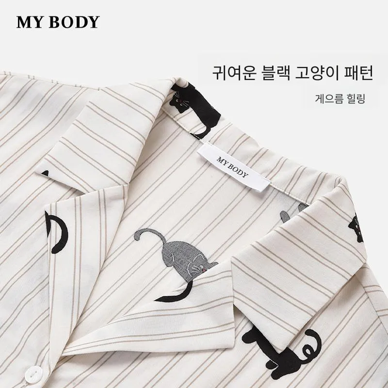 MY BODY 애프리콧 줄무늬 고양이 여성 파자마 세트