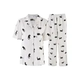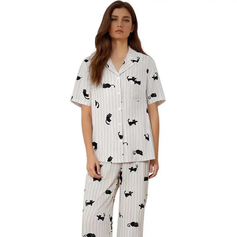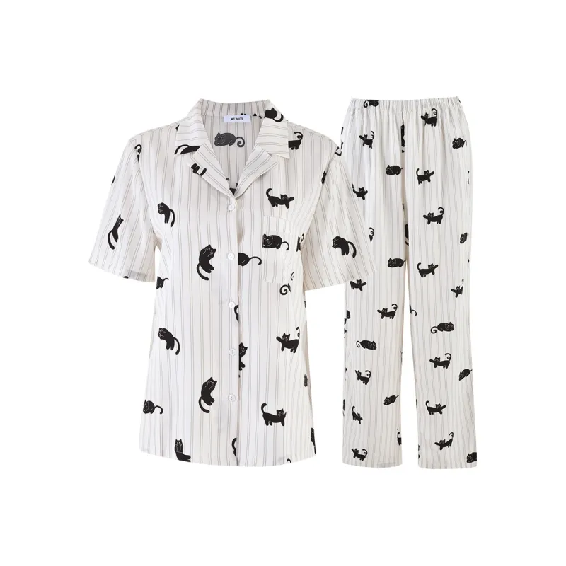 MY BODY 애프리콧 줄무늬 고양이 여성 파자마 세트 - POIZON