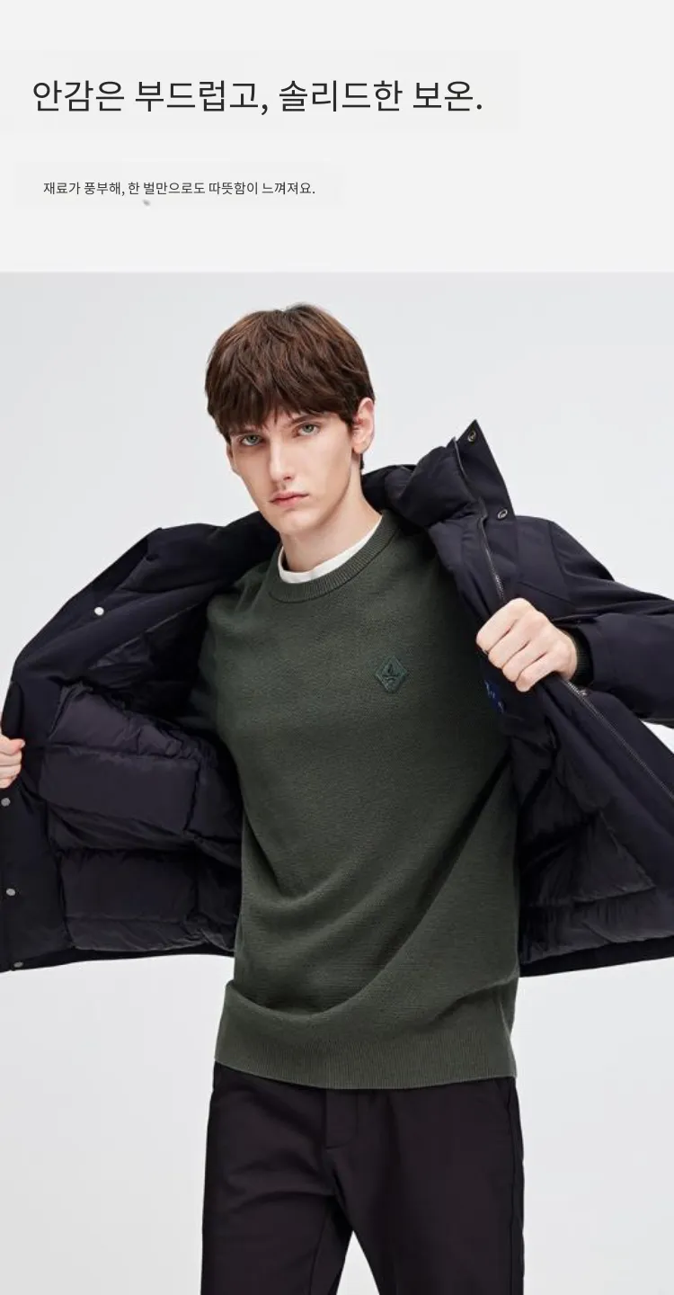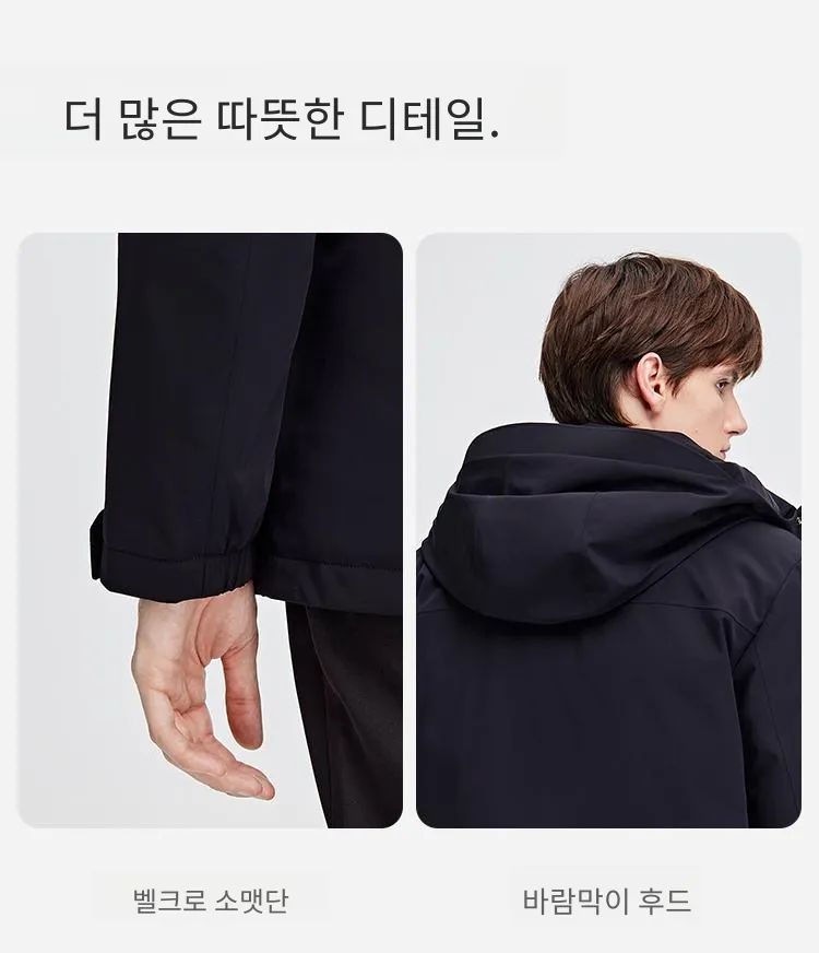 원단: 복합 겉감: 88.9% 폴리아미드, 11.1% 스판덱스 복합 안감: 100% 폴리에스터 안감: 100% 폴리아미드 안감 원단: 100% 폴리에스터 충전재: 화이트 오리털 (다운 함량 85%)