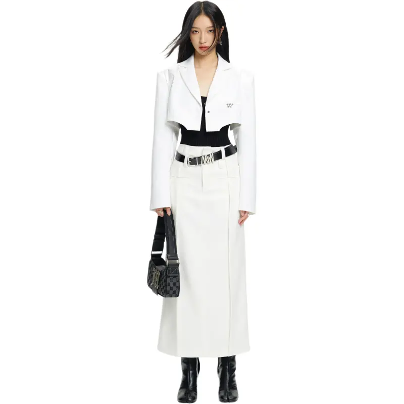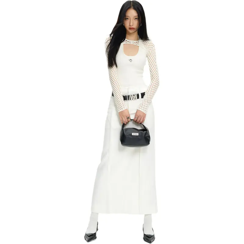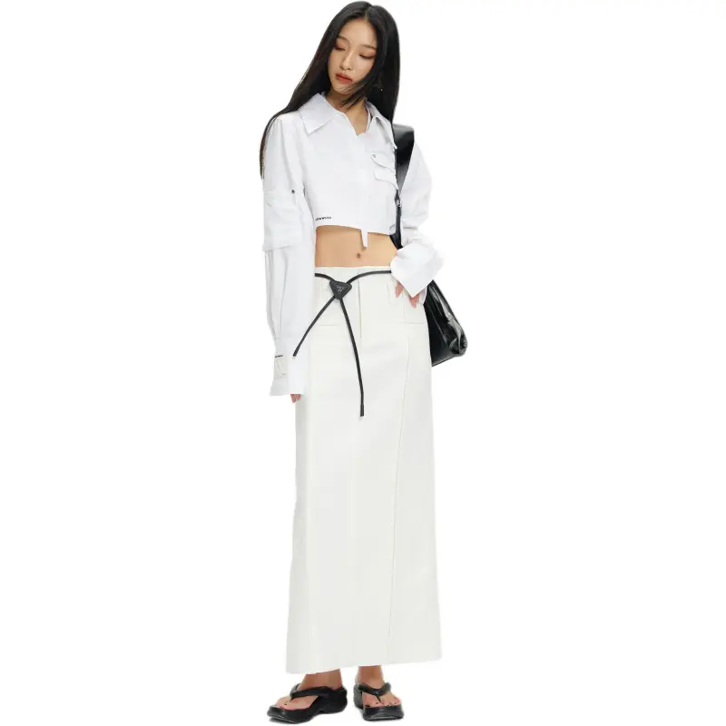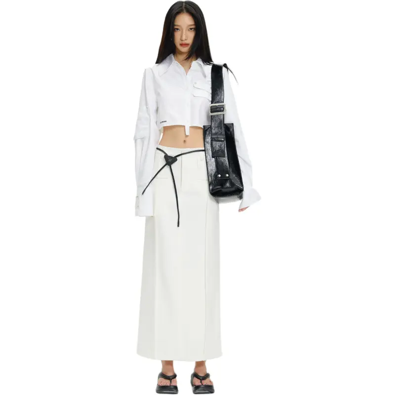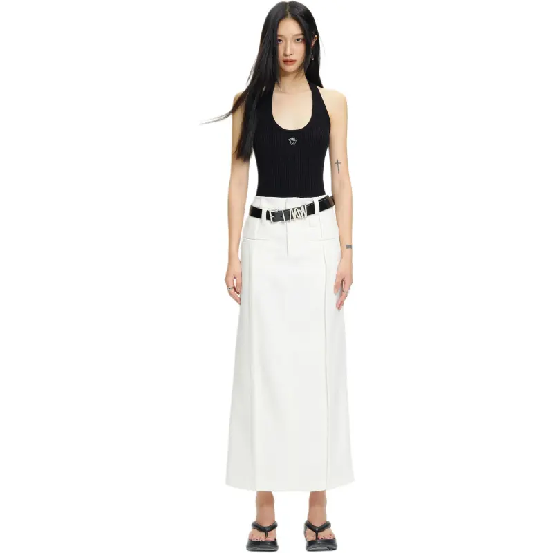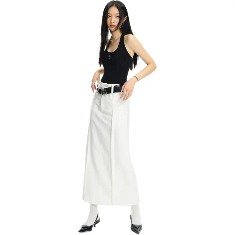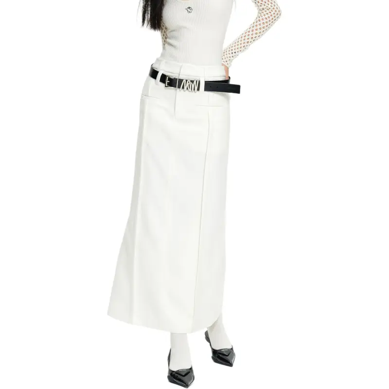 NAWS 프렌치 화이트 여성 캐주얼 롱 스커트 - POIZON